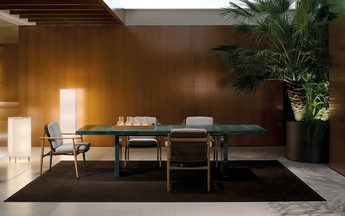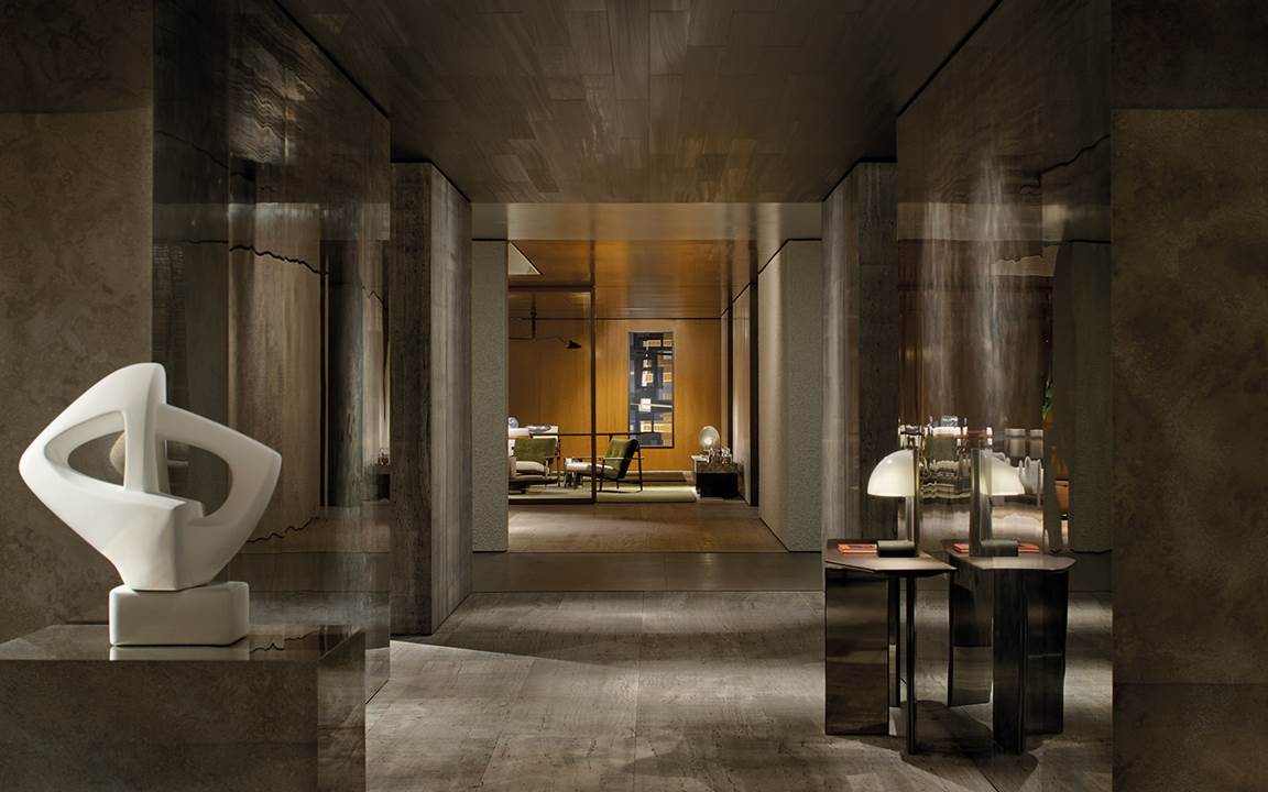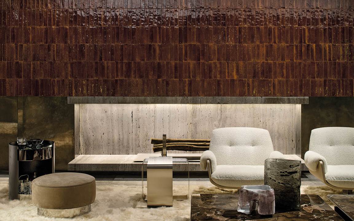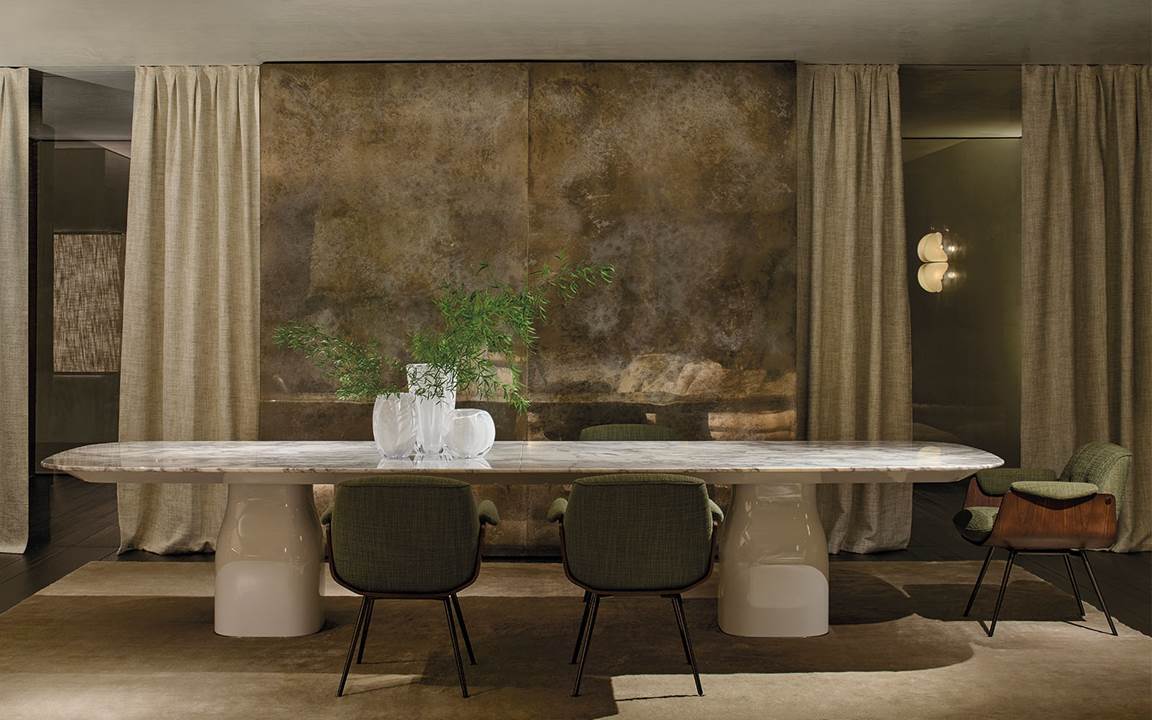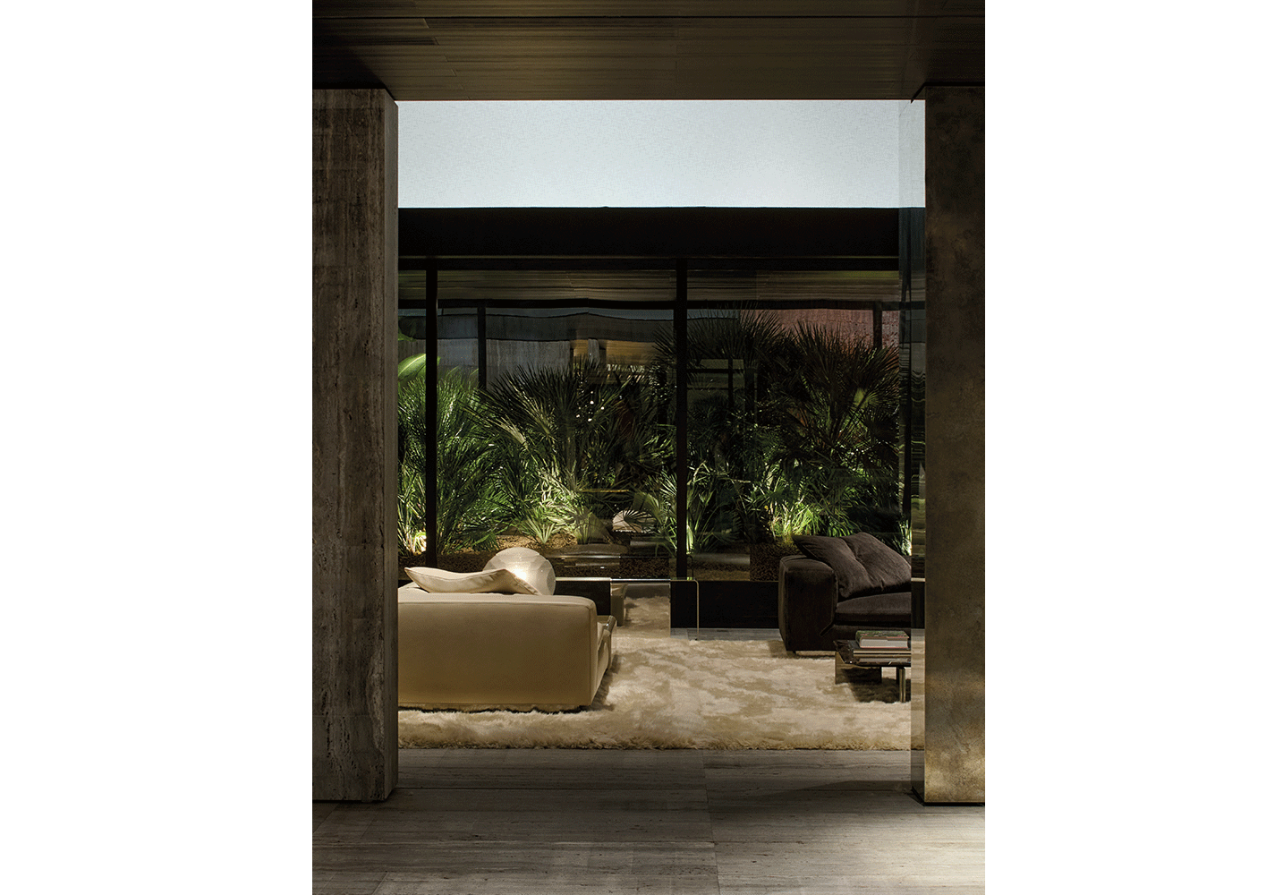 Realizado por Minotti Studio, el proyecto expositivo fue un lugar escenográfico realzado por un sofisticado juego de materiales, texturas y acabados, que evocan diferentes ambientes, enfatizadas por elementos naturales que amplifican su profundidad sensorial.