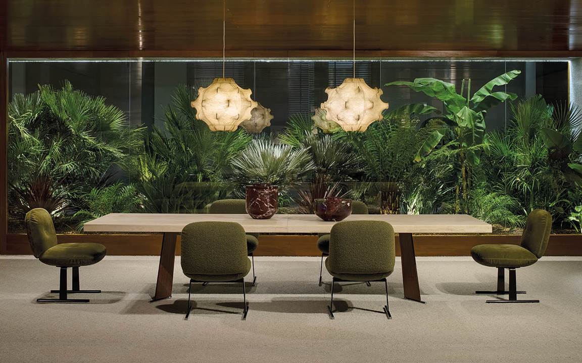 Los volúmenes de los nuevos sistemas de asientos – Bézier de Marcio Kogan / Studio MK27, Coupé de Giampiero Tagliaferri, Riley de Hannes Peer, Saki de Nendo y Vivienne de GamFratesi – enriquecieron cinco ambientes únicos, pero interconectados, que resultan ideales para entornos en constante evolución, sin límites y abiertos a la personalización.