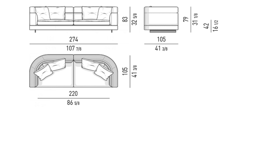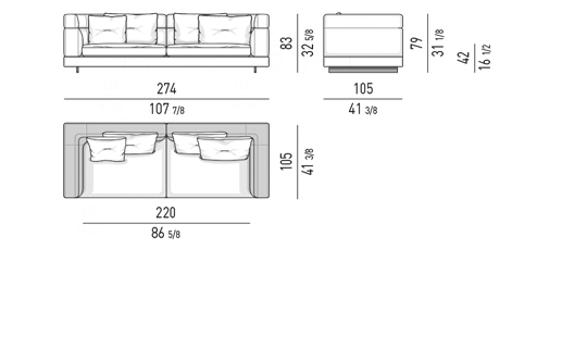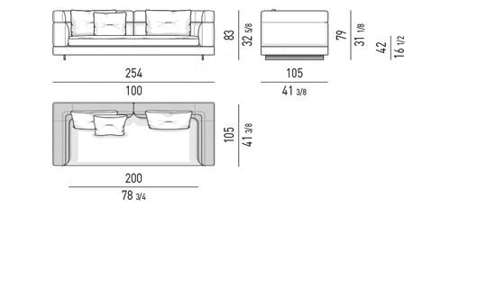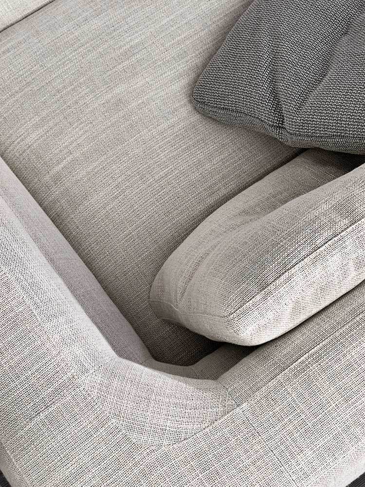 Alexander se caracteriza por los detalles sartoriales de las costuras de la esquina del sofá y del respaldo/brazo alto y por la costura central de los cojines del respaldo.