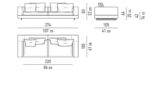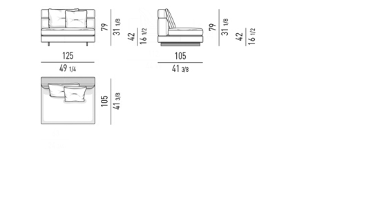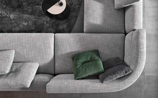 Los módulos pueden tener respaldos altos, bajos o de ambos tipos, contribuyendo a la versatilidad del sistema. Los elementos con respaldos altos diseñan rincones íntimos en los que acomodarse plácidamente como si se tratase de un nido para leer o ver la televisión, y se unen a elementos con respaldos más bajos concebidos para no obstaculizar la vista del espacio circundante.
