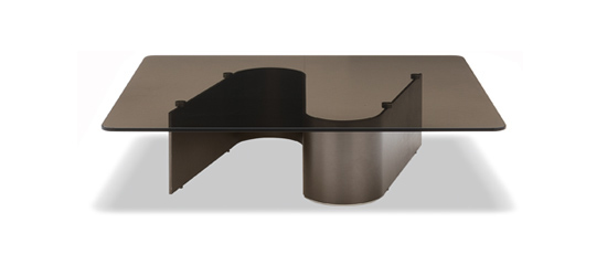 La base está formada por barras de aluminio color Bronce y mantiene los elementos elevados del suelo, confiriendo ligereza a los volúmenes suspendidos.