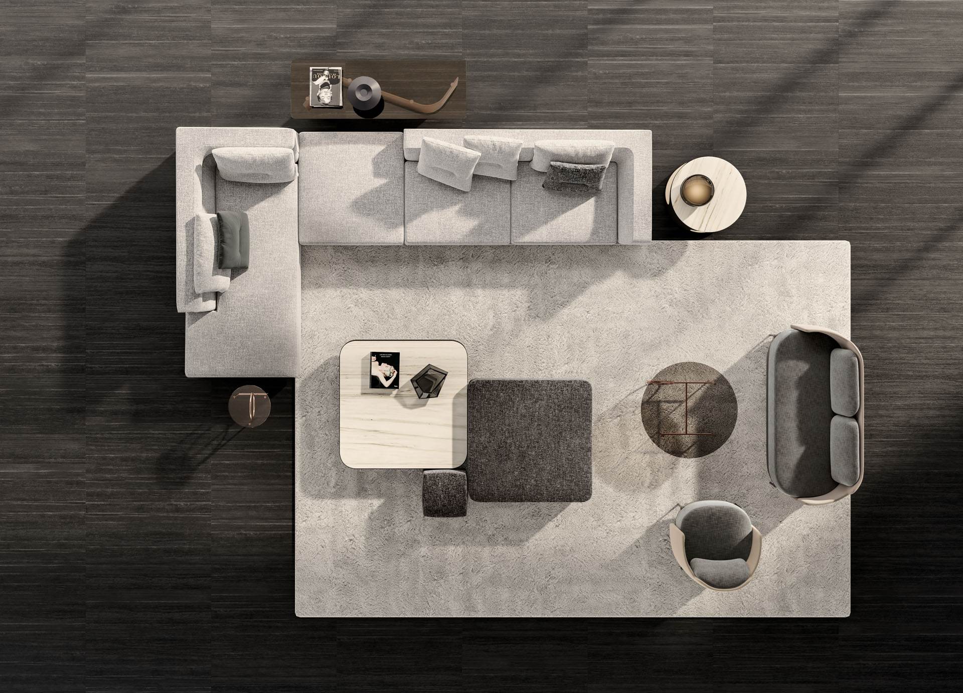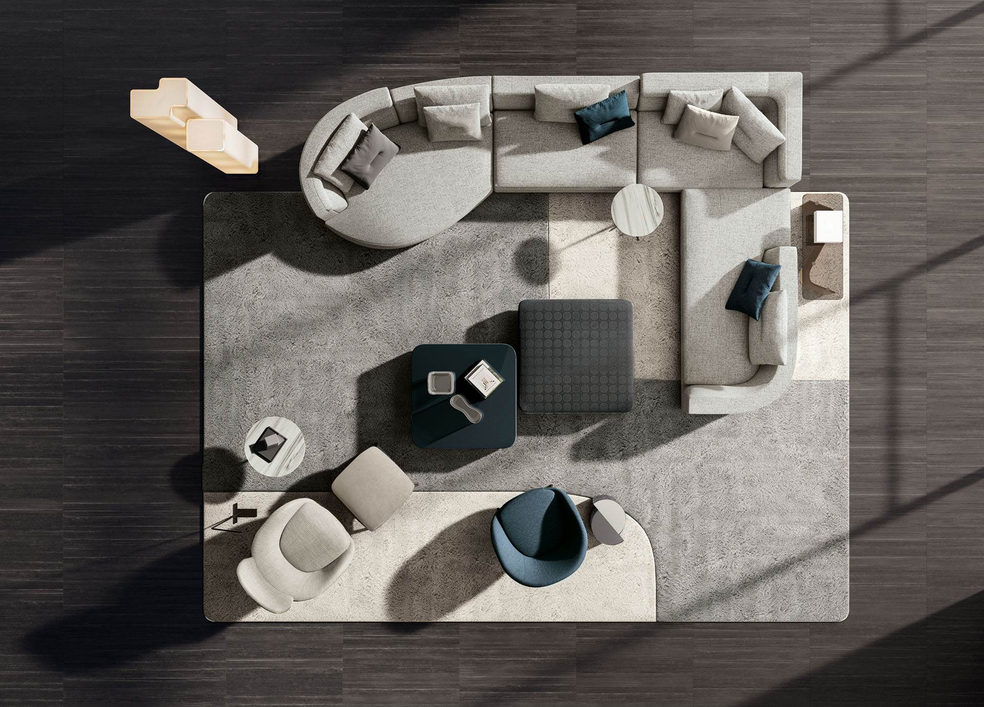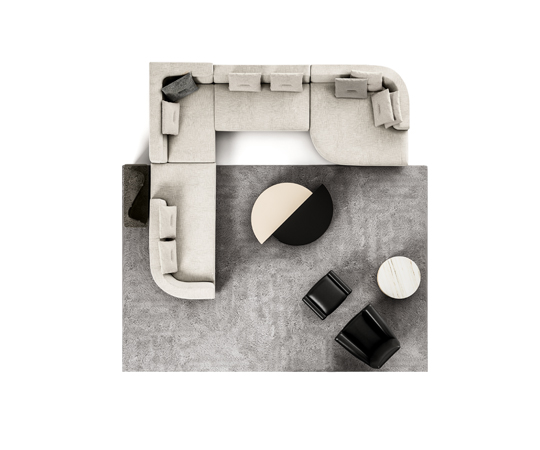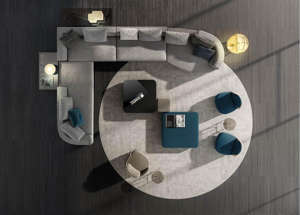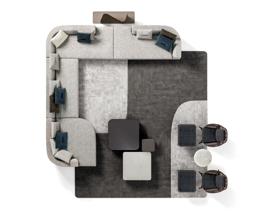 Inspirado en conceptos racionalistas y contemporáneos, Alexander es un sistema de asientos con distintas morfologías que admiten varias combinaciones. En una misma composición se pueden utilizar elementos cuadrados y curvos para crear rincones acogedores y envolventes.