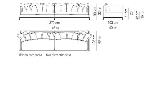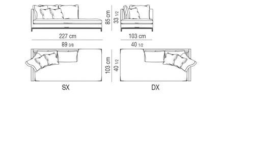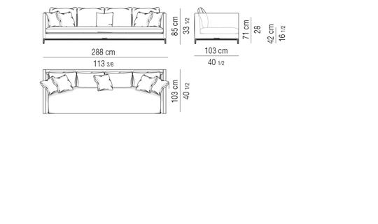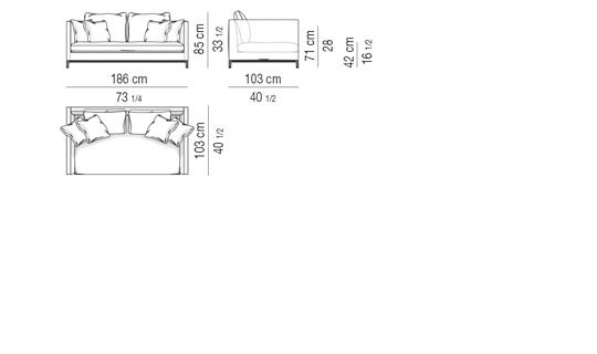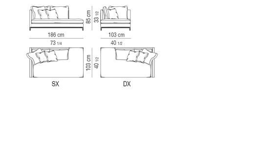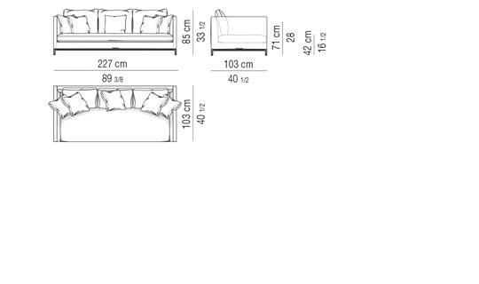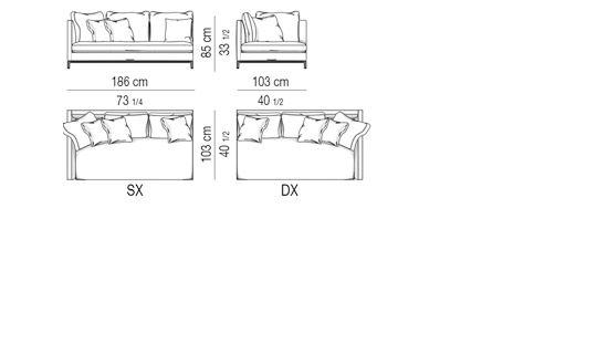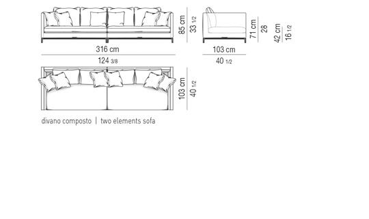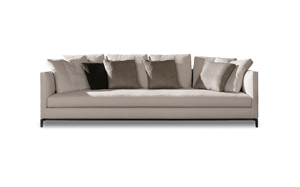 La estructura de Andersen Slim 103 se caracteriza por sus brazos estilizados a la altura del respaldo y está pensada para acoger una gran variedad de cojines, colocados con un esquema libre. De un aparente desorden nace la posibilidad de crear múltiples combinaciones de gran efecto decorativo. Gracias a la base elevada del suelo con patas de aluminio moldeado a presión barnizadas en color Peltre y al cojín único del asiento, Andersen Slim 103 presenta volúmenes reducidos y agraciados, y crea un efecto visual de gran ligereza y confort.