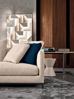 Thick seat cushion padding in channeled goose down, for increased cushion softness. Resilient polyurethane foam insert, covered - in the upper part - with “thermosensitive” polyurethane material. Backrest cushions fully padded with channeled goose down. Armrests and backrest frame covered on internal side with quilted channeled goose down, which results in enhanced softness, thereby making the armrests look like cushions.