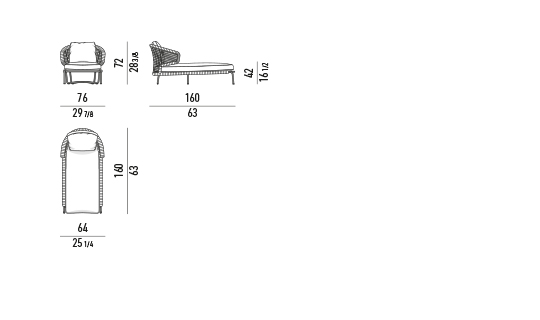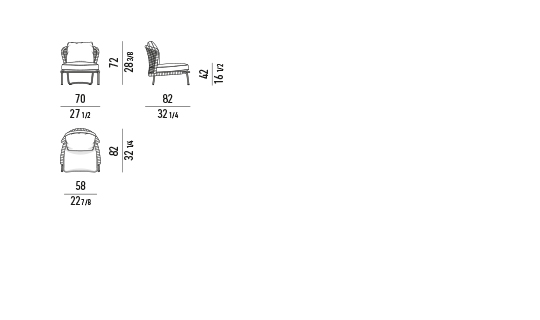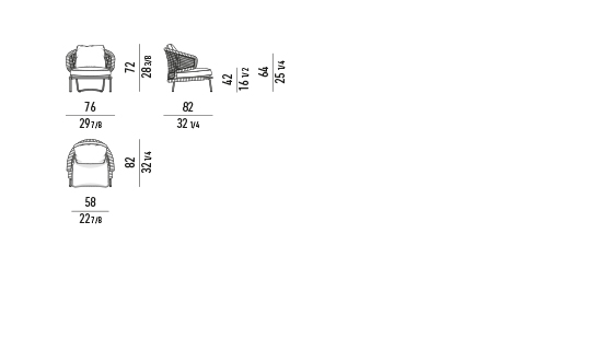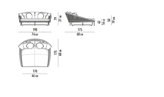 Aston es una familia de piezas únicas, compuesta por sofá, meridiana, sillones, reposapiés, sillas y un taburete disponible en dos alturas —101 cm y 114 cm—, concebida para decorar con estilo y elegancia tanto ambientes domésticos como espacios dedicados a la colectividad, en una dialéctica entre interiores y exteriores.