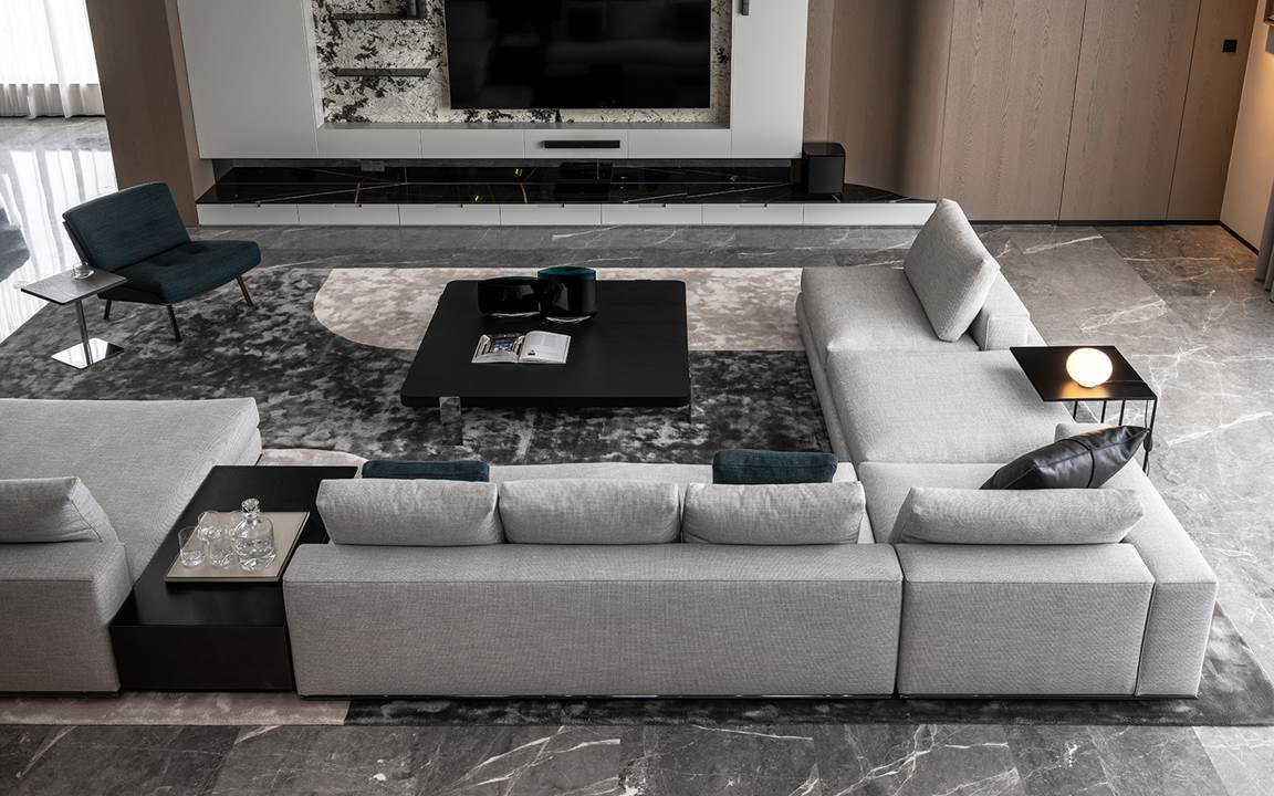 La continuidad estética y funcional de los muebles realza la percepción de la perfecta integración entre la naturaleza y la arquitectura, recreando el estilo de vida de Minotti, según el cual no hay fronteras entre el interior y el exterior, sino tan sólo proyectos.