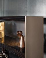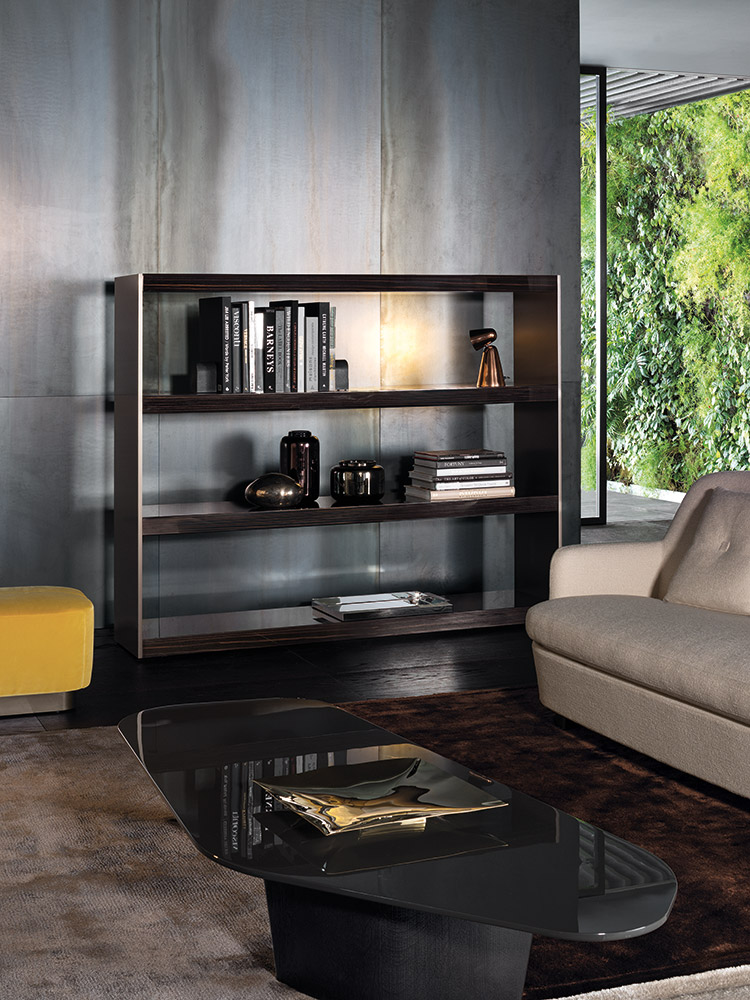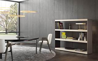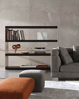 La librería Carson se caracteriza por una estética esencial y moderna generada mediante un juego de espesores: finos en los costados y gruesos en los estantes. Se presenta perfectamente acabada por detrás, por lo que puede utilizarse como elemento separador dentro del ambiente.
