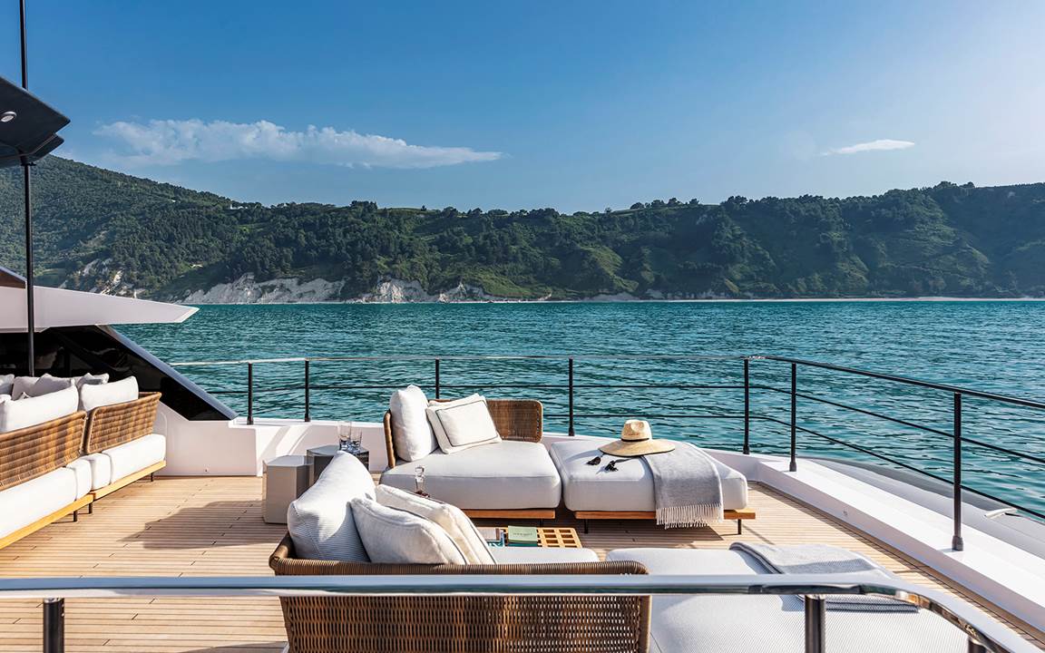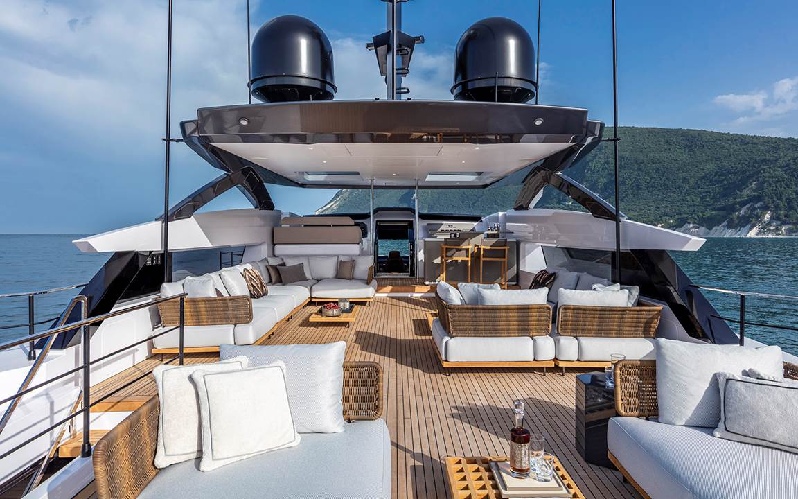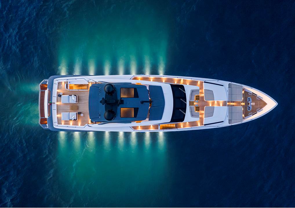 El yate Custom Line 106’ firmado por Francesco Paszkowski Design con Margherita Casprini para los ambientes interiores y desarrollado en colaboración con el Comité Estratégico de Producto Custom Line, presidido por el ingeniero Piero Ferrari, y la Dirección de Ingeniería del Grupo Ferretti ha sido diseñado para ofrecer a sus huéspedes una experiencia única a bordo de la embarcación.