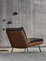 - beech plywood and flamed ash veneer with open-pore Licorice colour lacquer finish. Crafted on CNC machines and assembled with dowel joinery. Armrests in aluminium sheet coated in integral skin polyurethane and covered in fabric or leather.