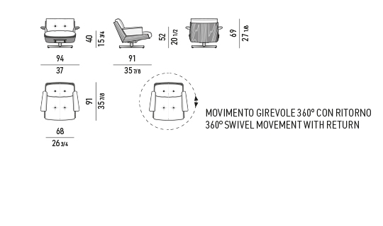 ARMCHAIR - CUSHIONS IN FABRIC - SWIVEL