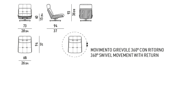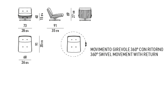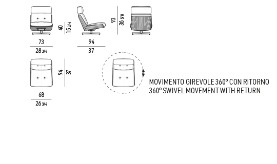 Armrest, seat and backrest cushion covers are completely removable in both the fabric and leather versions. To remove armrest covers, unscrew armrests from the structure.