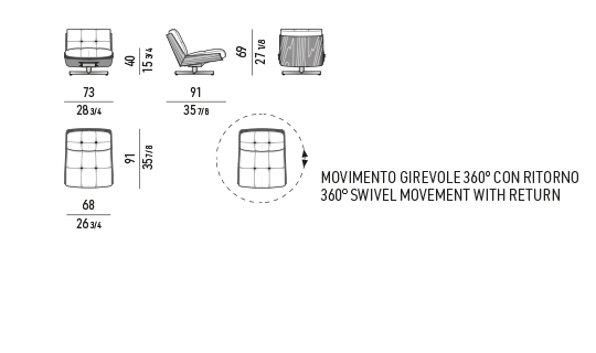 BERGÈRE - CUSHIONS IN FABRIC - SWIVEL