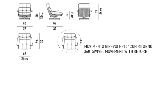 ARMCHAIR - CUSHIONS IN LEATHER - SWIVEL