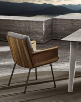 Un diseño que explora y reinterpreta las atmósferas norteamericanas de mediados de siglo dando nueva linfa al estilo de la decoración de exteriores contemporánea con líneas netas y estilizadas, una sofisticada manufactura de la teca y un gran equilibrio de las proporciones.