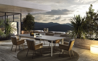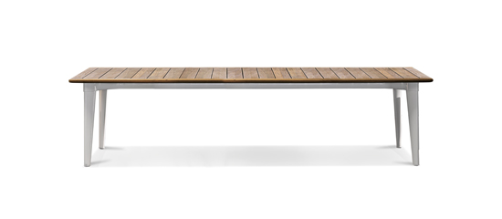 Un diseño que explora y reinterpreta las atmósferas norteamericanas de mediados de siglo dando nueva linfa al estilo de la decoración de exteriores contemporánea con líneas netas y estilizadas, una sofisticada manufactura de la teca y un gran equilibrio de las proporciones.