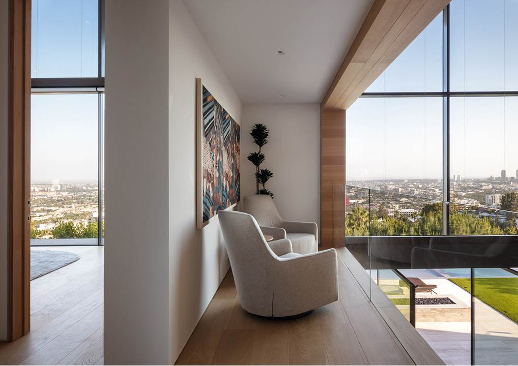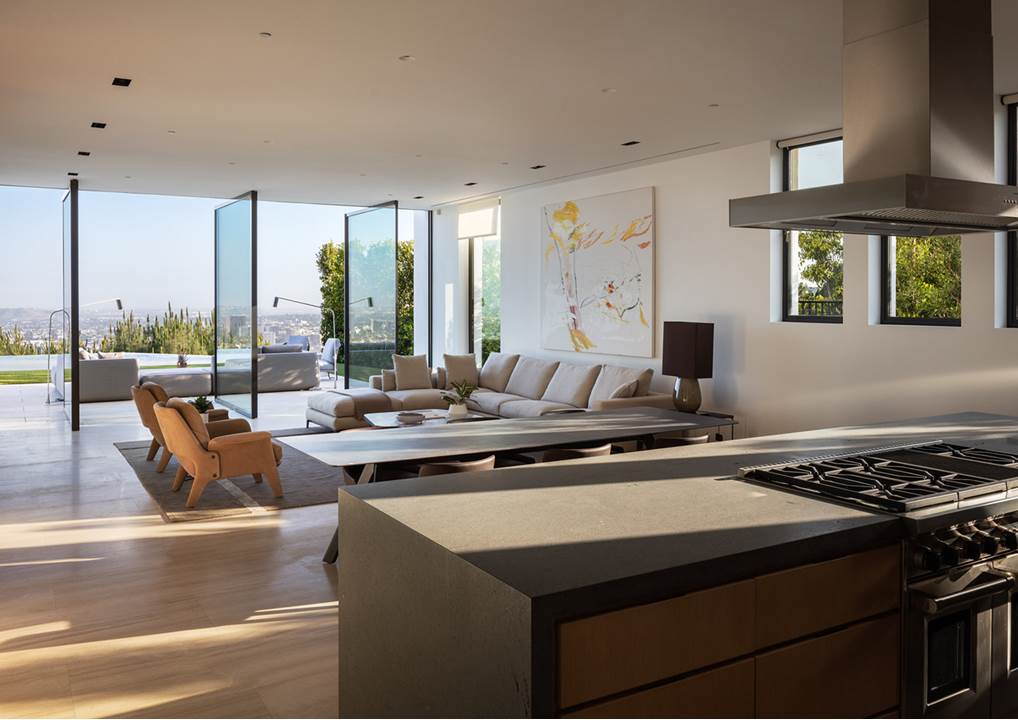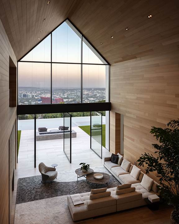 Una residencia con vistas a Los Ángeles cuyas formas se inspiran en el lenguaje del modernismo danés combinado con los arquetipos de la arquitectura rural americana. Un escenario majestuoso para el mobiliario de Minotti que se inspira formalmente en el Kimbell Art Museum de Louis Kahn.