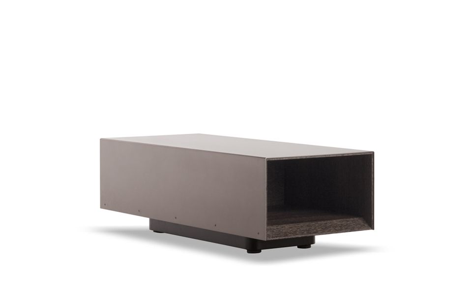 La mesita Gray ha sido diseñada expresamente como complemento del sistema de asientos Freeman. La estructura externa abierta en dos lados es de chapa de metal con acabado Bronce satinado, mientras que la parte interna está completamente chapada en Sucupira teñida Visón, con un resultado estético sumamente elegante. Las medidas del equipamiento interno han sido diseñadas para acojer las bandejas Gray, chapadas también en Sucupira teñida Visón. Gracias a sus dimensiones, la mesita Gray puede utilizarse tanto entre dos elementos de asiento como al lado del sofá.