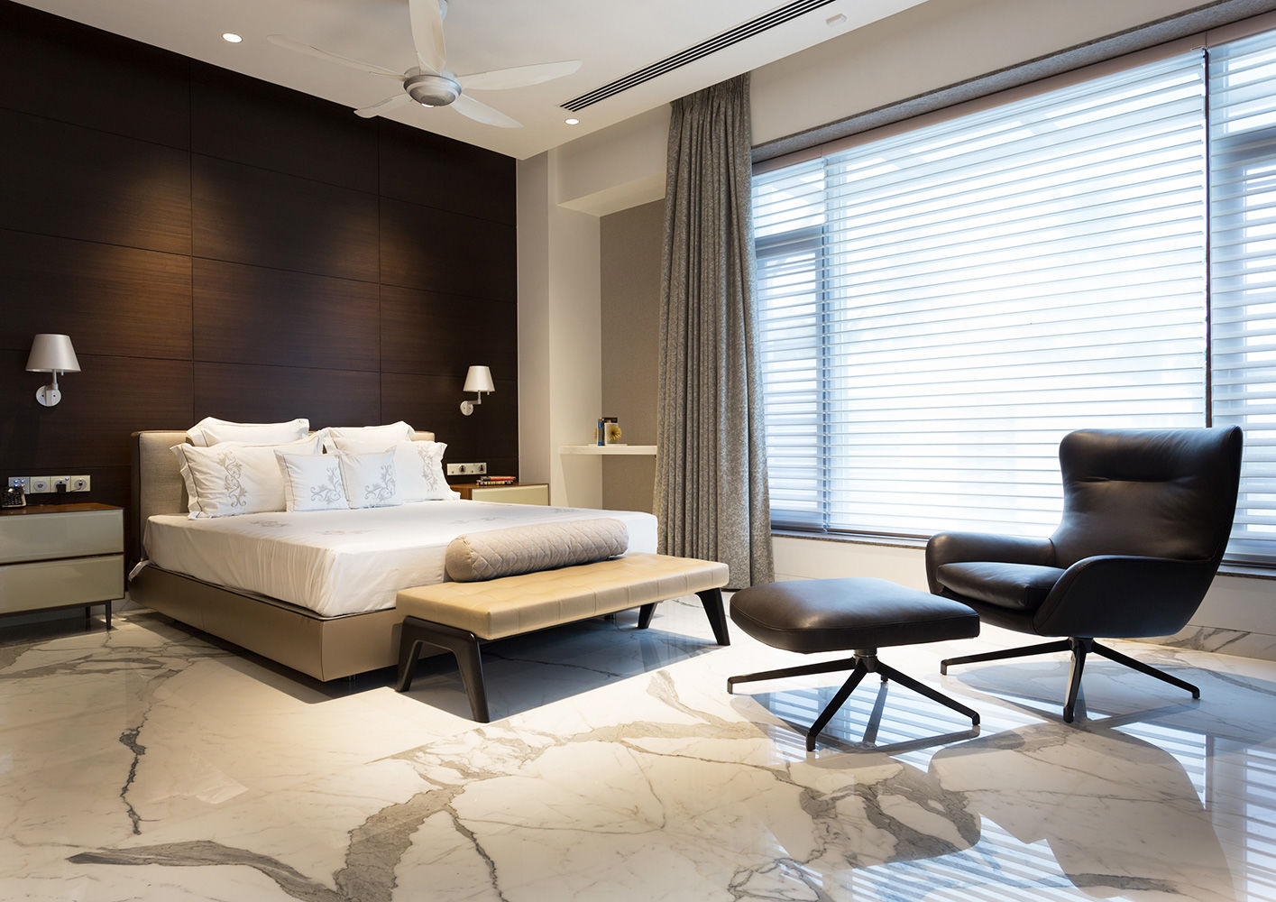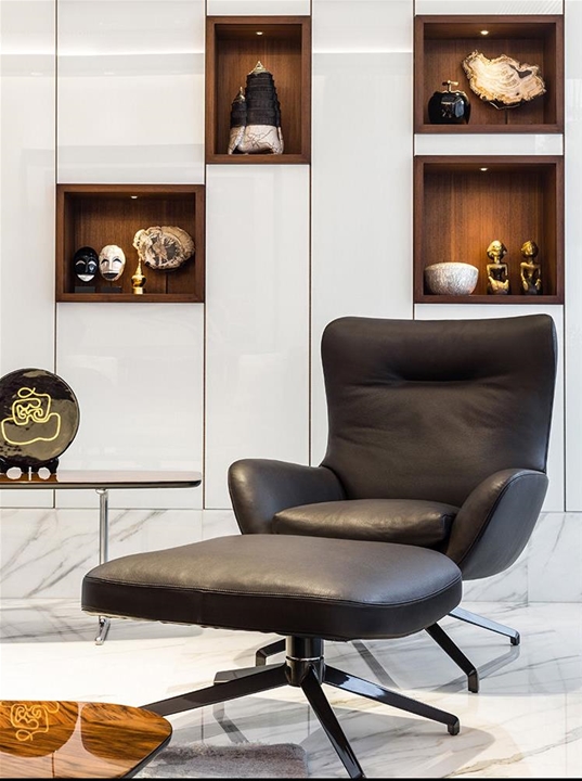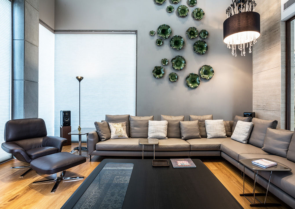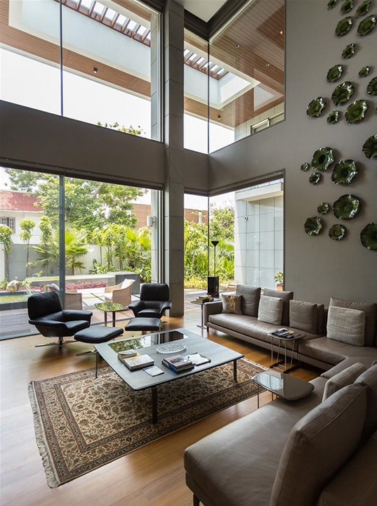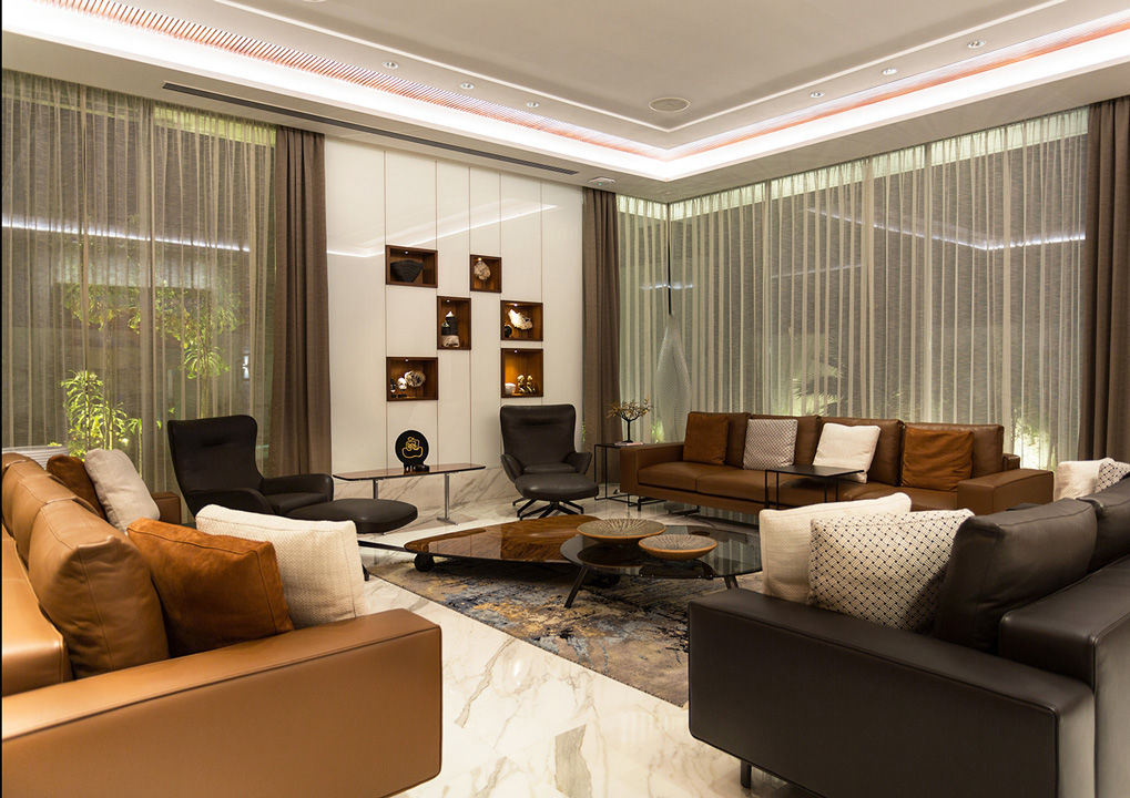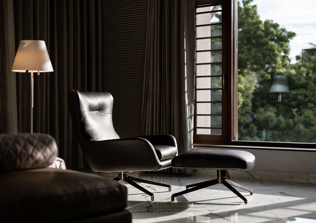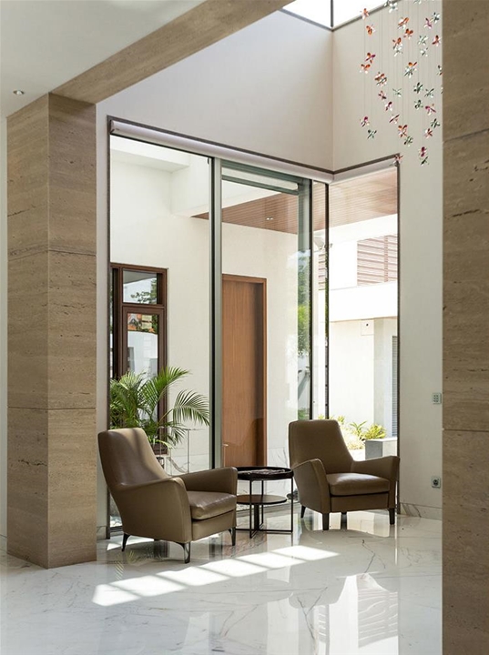 El concepto para la construcción de esta residencia privada en Chennai, India, se basa en el pedido del cliente de realizar un edificio perfectamente insertado en el contexto paisajístico, respetando cánones constructivos tradicionales pero con una interpretación en clave mínima y contemporánea. El estudio Arvind Varuna Associates, encargado del proyecto arquitectónico y del diseño de interiores, ha realizado una vivienda que une la elegancia al confort, con detalles de gusto decorativo local, en una bien lograda mezcla ecléctica. La selección de los materiales ha privilegiado el uso de mármol, piedra y vidrio combinados con teca, y una paleta de tonos naturales, para un efecto natural chic que se refleja también en la elección de los revestimientos de los asientos, en su mayoría revestidos en refinada piel de color beige. El amplio y luminoso espacio living ha sido amueblado con una composición angular del sistema de asientos Allen, combinado con sillones Blake-Soft y mesitas Perry y Brice. Un segundo espacio lounge presenta sofás Sherman y sillones Jensen, mesitas Sullivan y consola Wilson. Para la habitación patronal se ha elegido la cama Bedford Bed, con mesitas de noche Morrison, banco Kirk Bench y un sillón Jensen con reposapiés.