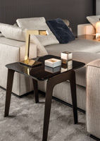 Las mesitas Kirk son complementos perfectos para los nuevos sistemas de asiento. Sus dimensiones han sido estudiadas para coincidir con la profundidad del sofá y para integrarlas en los sofás con chaise longue. Kirk puede utilizarse como una funcional superficie de apoyo entre dos elementos del sistema de asientos Leonard, aportando un toque de dinamismo en el ambiente.