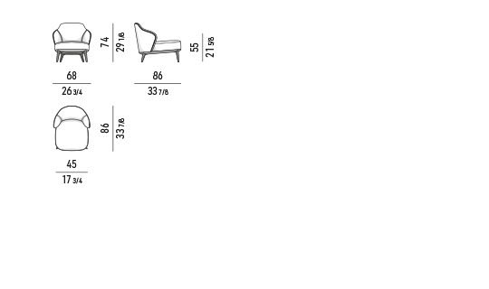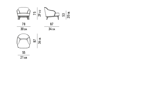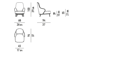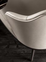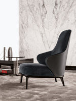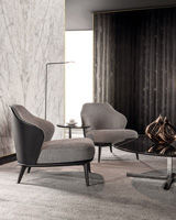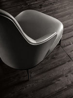 Con sus proporciones perfectamente calibradas, los sillones de la colección Leslie expresan una gran elegancia formal y son capaces de suscitar una cálida sensación de intimidad y protección.