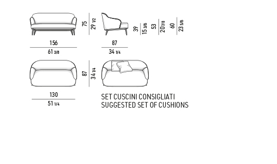 Un sofá que se distingue por sus ligeros volúmenes y por una confección que expresa gran maestría artesanal.