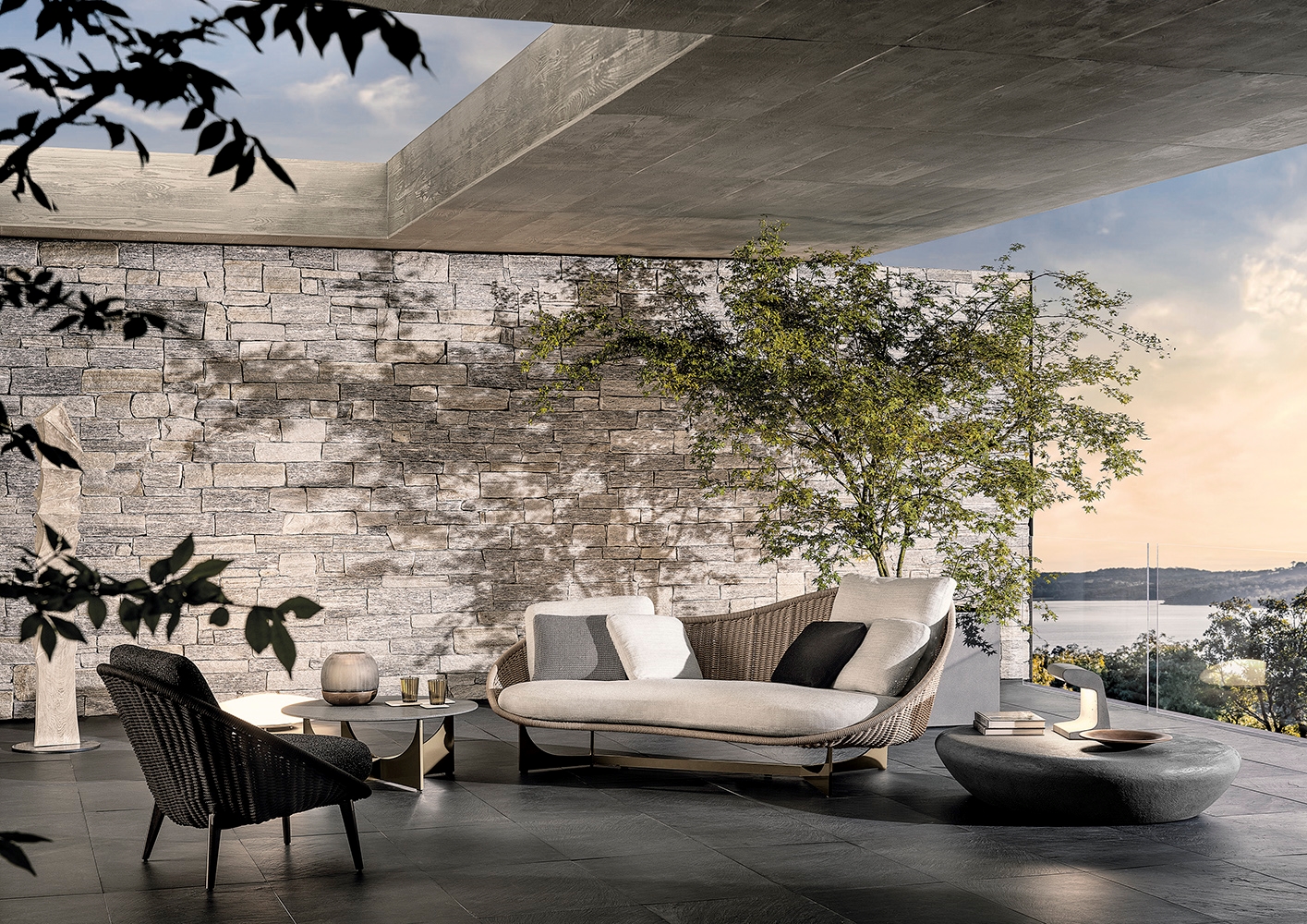 La familia Lido, también diseñada por el estudio GamFratesi, es un proyecto que expresa perfectamente la capacidad de Minotti de interpretar un mismo diseño para diferentes ambientes, tanto de interior como de exterior.