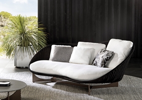 La familia Lido, también diseñada por el estudio GamFratesi, es un proyecto que expresa perfectamente la capacidad de Minotti de interpretar un mismo diseño para diferentes ambientes, tanto de interior como de exterior: son la tecnología y los materiales con los que están realizados los que definen su finalidad.