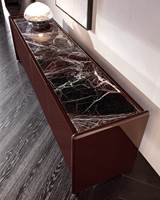 - external finish, glossy lacquer Moka / interior structure matt lacquer Moka / top in Nero Marquina marble, glossy lacquer Moka or Canaletto walnut stained Dark Brown with matt polyester lacquer finish;