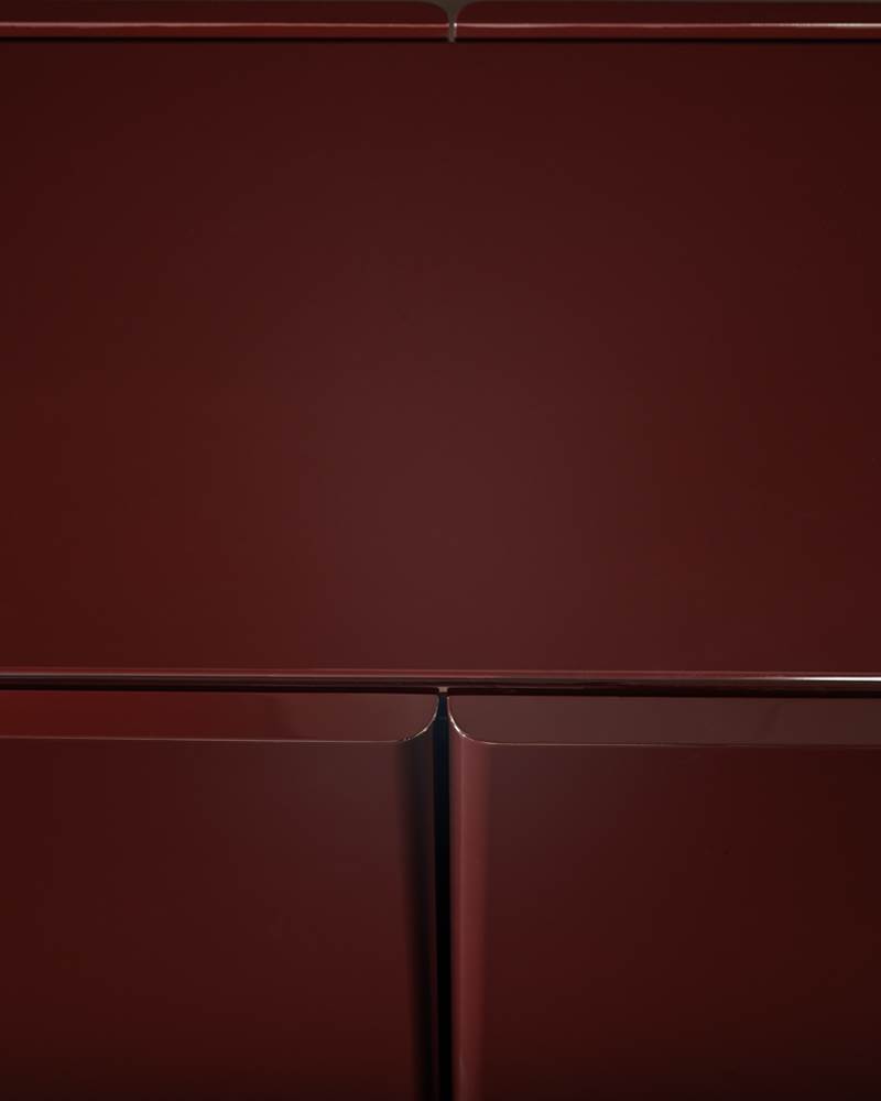 Internal structure: in MDF, 20 mm thick, brushed ash veneer, open-pore Black lacquer finish or matt lacquered in the same colour as the external lacquer. Vertical side panels, in MDF, 40 mm thick, contoured; doors, large drawer fronts and back panels, in MDF, 25 mm thick, contoured.