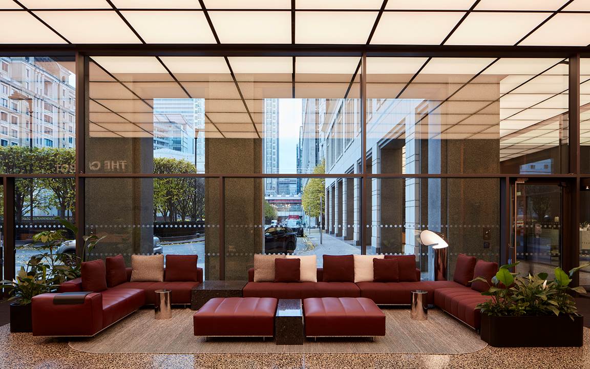 En el corazón del ultramoderno distrito financiero londinense de Canary Wharf, 25 Cabot Square, un edificio de 17 plantas sometido a una importante renovación, acoge en su lobby una selección de muebles de Minotti.