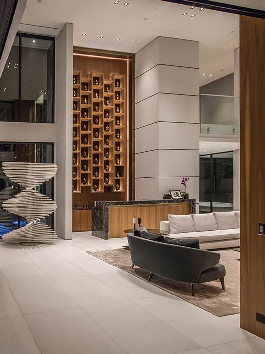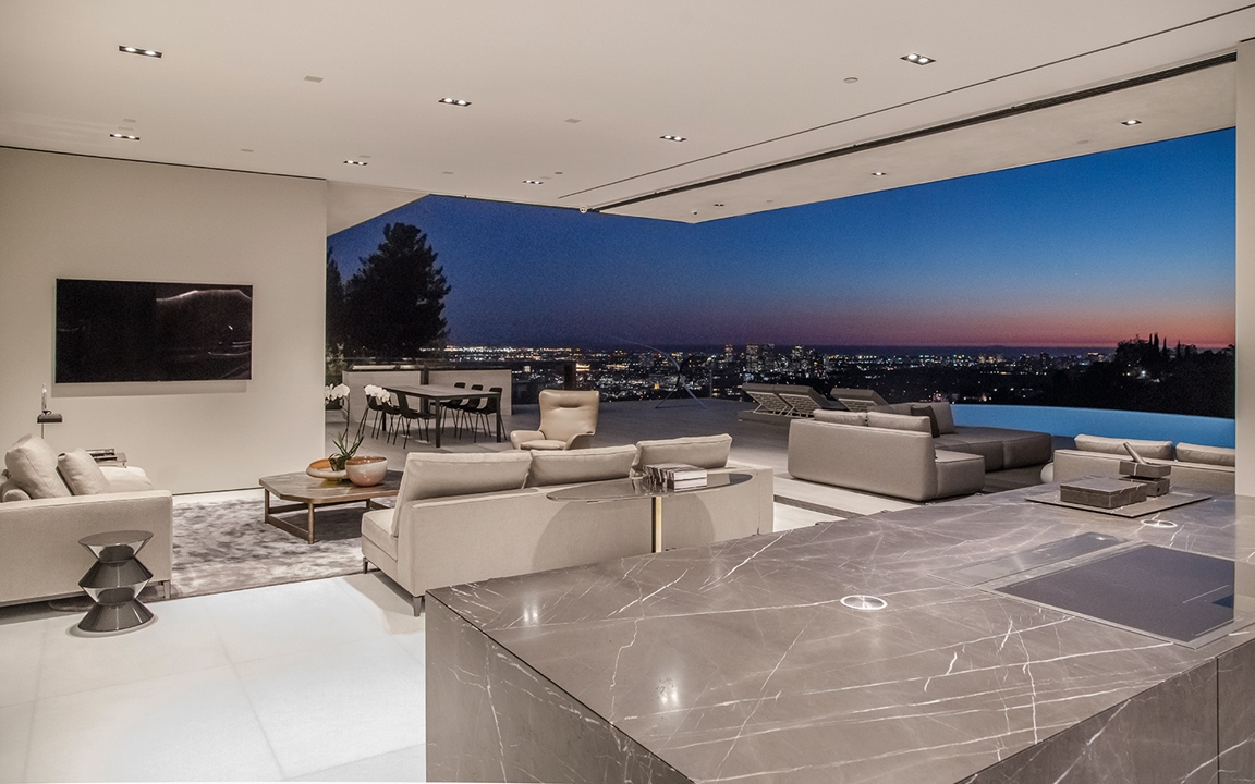 Además de disfrutar de una impresionante vista panorámica de la ciudad y de una posición privilegiada en la exclusiva área residencial Doheny Estates, el apartamento se extiende sobre una superficie de unos 1150 m². Sus amplios volúmenes arquitectónicos han sido distribuidos con gran precisión y presentan una serie de combinaciones cromáticas y de texturizados de gran efecto: la luminosidad y la generosidad de los espacios aparecen resaltadas por el color beige de las paredes que domina en todo el proyecto, intercalado con boiseries de madera.
