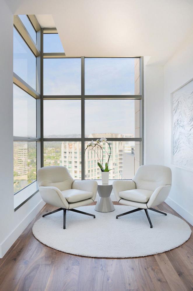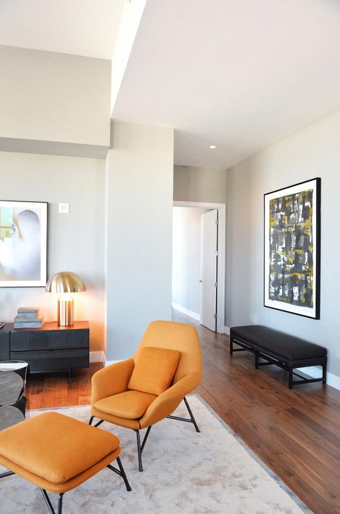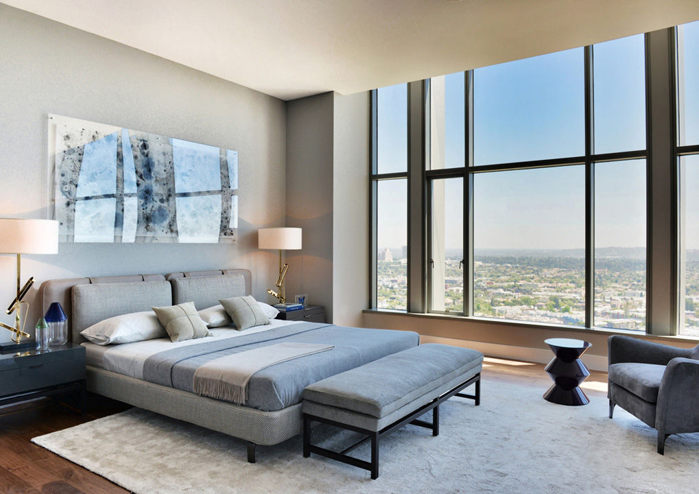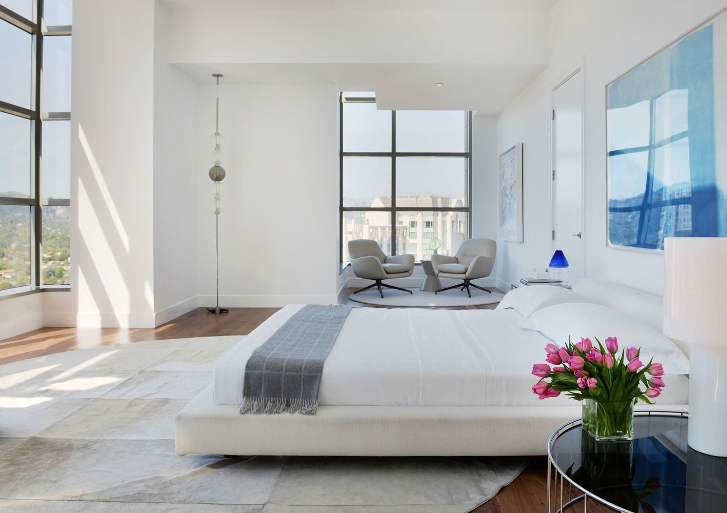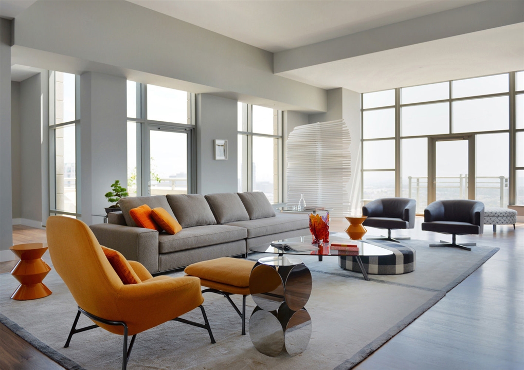 Un ático de 500 m2 en el Carlyle Residence de Los Ángeles, con un proyecto de diseño de interiores de refinada elegancia realizado por Minotti L.A. El apartamento se caracteriza por techos de 4 m de alto, cristaleras de altura completa y una terraza con una envidiable vista panorámica de la ciudad. El equipo de diseño de Minotti L.A., coordinado por Mary Ta, se ha ocupado del proyecto prestando atención a cada detalle, con el objetivo de crear un ambiente doméstico confortable y refinado. En el amplio living, el espacio en torno a la chimenea se ha amueblado con sofá y consola Williams, sillones Martin, mesitas Sullivan, Still y Cesar y un mueble Morrison. El sillón y el puf Prince, revestidos en un tono de naranja brillante, aportan un toque de calidez a un ambiente que propone una sofisticada decoración de gusto contemporáneo. En la sala comedor contigua, una gran mesa Claydon con tablero de roble moka se acompaña de sillas y butacas Flavin, mientras que en el área adyacente a la cocina hay una mesa Evans Outdoor con sillas Cortina Outdoor. El ático tiene tres dormitorios, totalmente amueblados con una cuidada selección de la amplia colección de la empresa. El primero tiene cama Kline y una mesita Caulfield; en el espacio adyacente a las grandes ventanas hay dos sillones Jensen con una mesita Cesar. El hilo conductor es el color blanco elegido para el revestimiento de la cama y de los sillones. Para el segundo dormitorio se ha elegido la cama Tatlin Soft, acompañada de mesita de noche Harvey, banco Flynt y sillón Denny revestido en ante. En el tercer dormitorio, la cama Venice, revestida en un cálido tono de beige, se acompaña de mesitas de noche Harvey. Junto a la ventana se han colocado el sillón y el puf Capri y una mesita Cesar en un tono de verde brillante. La prestigiosa colaboración con el Carlyle marca otra importante meta alcanzada por Minotti Los Angeles, precisamente en el año en que se celebra la primera década desde su inauguración. Project: Carlyle Residence Penthouse Project type: Residence Location: U.S.A. Los Angeles Year: 2014 Interior Design Project: Minotti L.A. Photos by: Andrea Russo