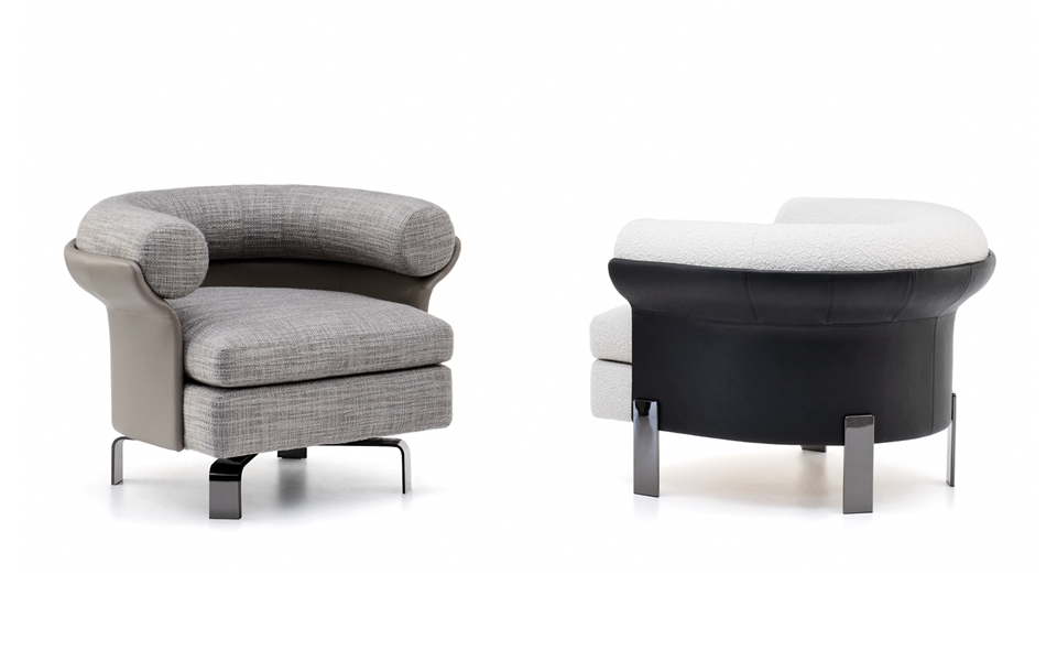 Meticulosamente perfilado, el bastidor externo acoge el asiento abriéndose como una corola para acoger el original elemento cilíndrico del respaldo. Sus soluciones formales con reminiscencias escultóricas y el equilibrio entre la estructura rígida y el volumen suspendido dan vida a asientos caracterizados por una estética suave y envolvente.