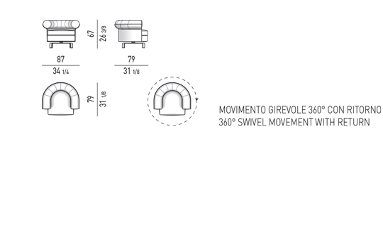 In metal, Black-Nickel fi nish. Lounge chair comes with a 360° swivel base with return. Black protective SEBS glides.