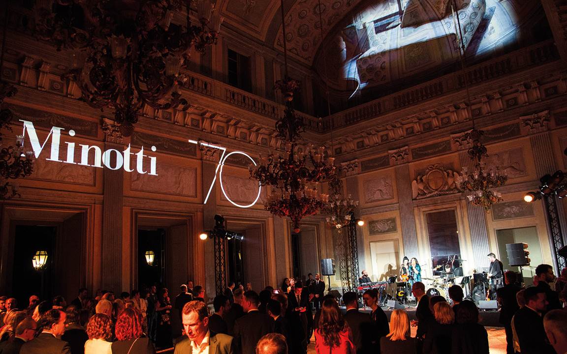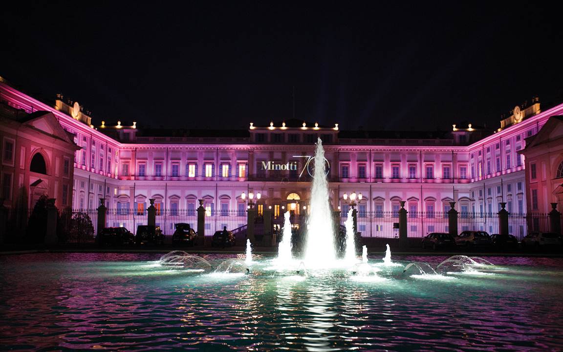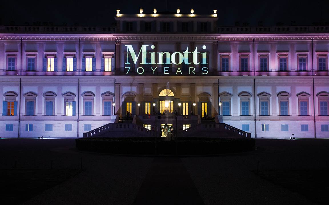 El 18 de abril de 2018, durante la Semana del Diseño de Milán, Minotti ha celebrado su 70.º aniversario con una sugestiva instalación en el espléndido marco de la Villa Real de Monza. Un lugar prestigioso, elegido para rendir homenaje a la larga historia de Minotti y a la calidad del diseño italiano que, precisamente en Brianza, cuenta con magníficas expresiones de excelencia.