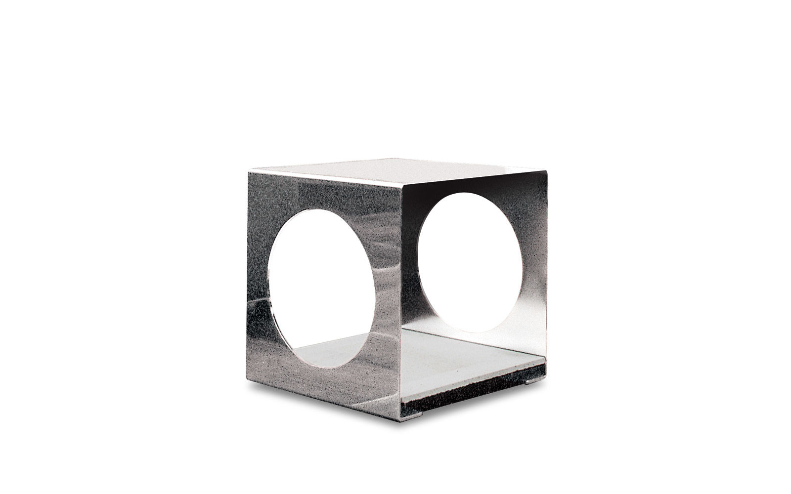 Metal bent and laser-perforated sheet, 5 mm thick. Polished Black-Nickel finish.