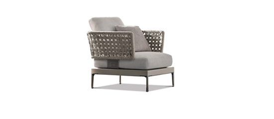 La estructura de aluminio y el respaldo de acero, revestido con cuerda trenzada de polipropileno, sostienen unos suaves cojines que hacen que el diseño sea perfecto para disfrutar de momentos de relax y convivencia.