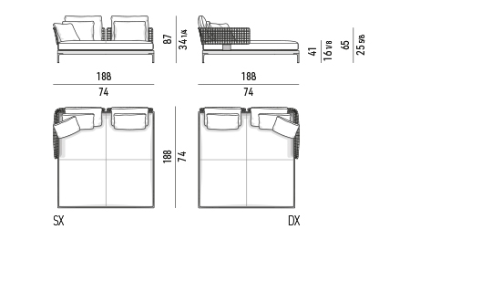 Las dimensiones indicadas en los archivos CAD pueden variar ligeramente respecto a las medidas que figuran en la ficha de producto. N.B.: los archivos CAD presentes en el sitio web están protegidos por derechos de autor y son propiedad exclusiva de Minotti SpA. La empresa solamente autoriza su uso en el ámbito del diseño de interiores. Se prohíbe terminantemente cualquier otro uso