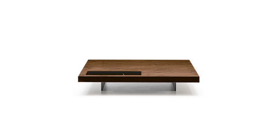 Roger presenta una base de aluminio estirado, pintada en color Black Coffee, sobre la que se apoyan los elementos tapizados y los volúmenes Case en madera de palisandro Santos teñido Dark Brown, madera de fresno lacada de poro abierto de color Negro o madera lacada Hielo, Cappuccino y Moka, con un compartimento de almacenamiento abierto en la parte delantera o en los laterales, forrado de aluminio satinado de color Brandy. Dos aspas transversales de aluminio pintadas en color Black Coffee hacen casi imperceptible el punto de apoyo y lo elevan 13 cm del suelo, dando una impresión aérea al asiento.