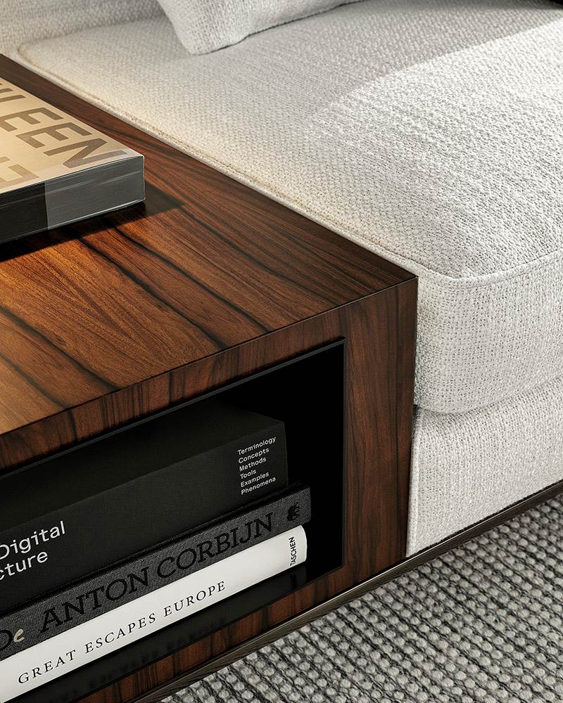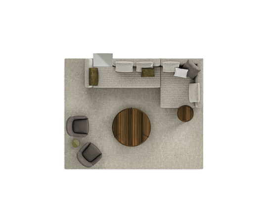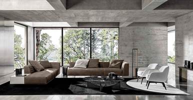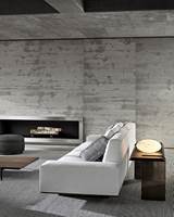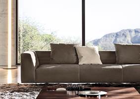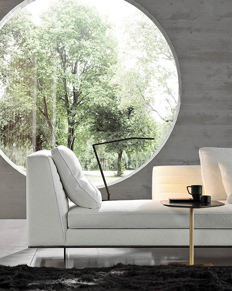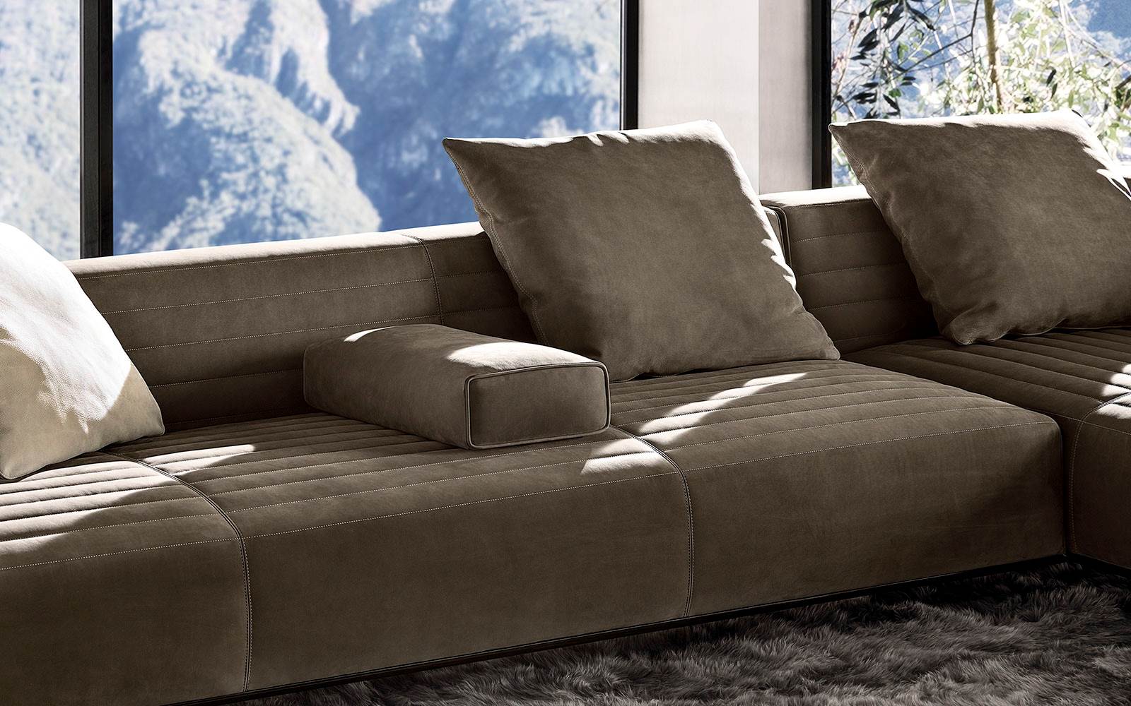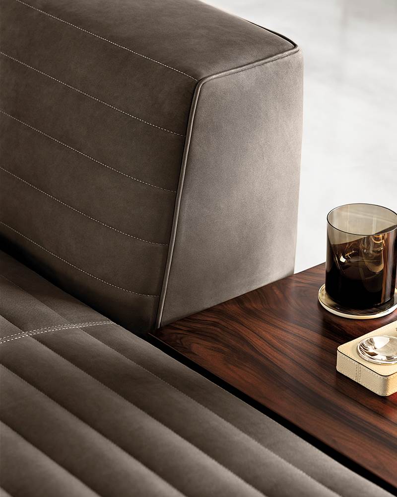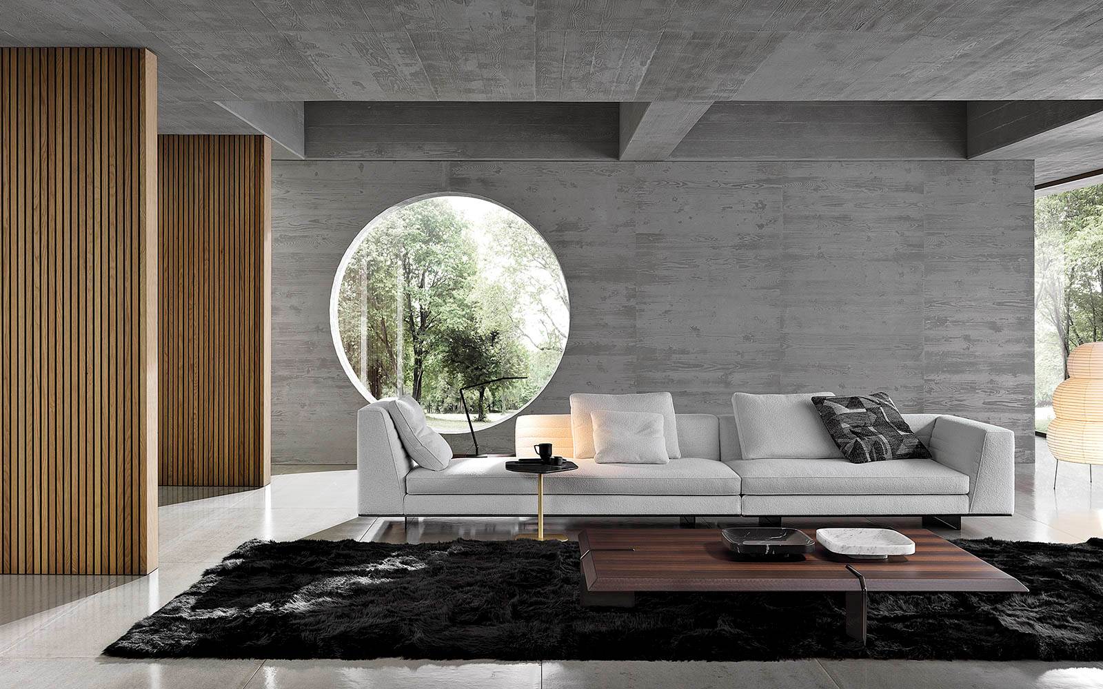 Roger lleva la firma de Rodolfo Dordoni y ha sido desarrollado en colaboración con Minotti, cuya impronta se encuentra en los suaves volúmenes, los sofisticados tapizados y la sastrería.