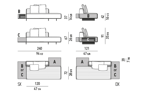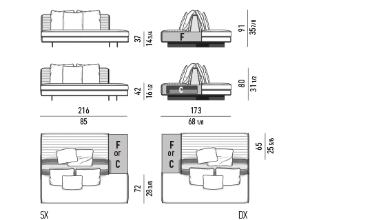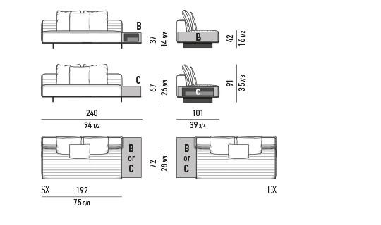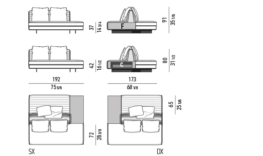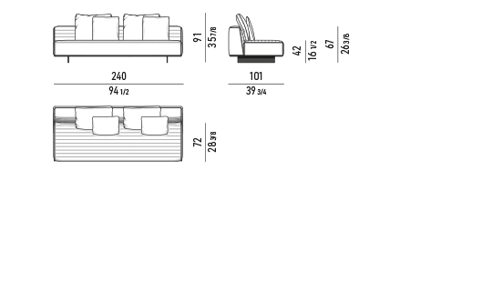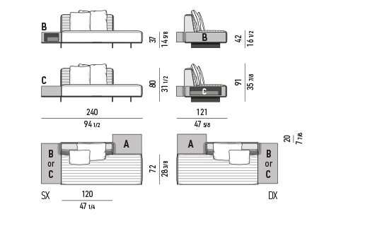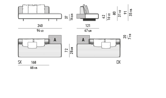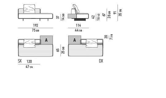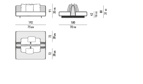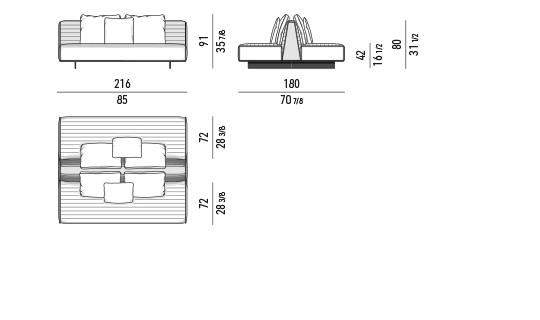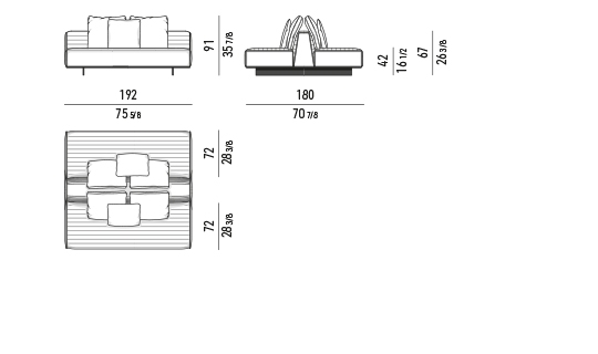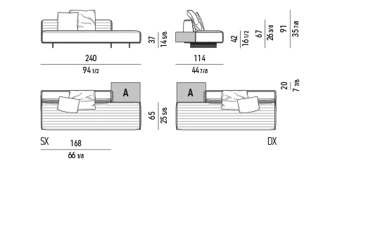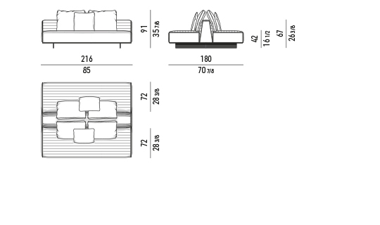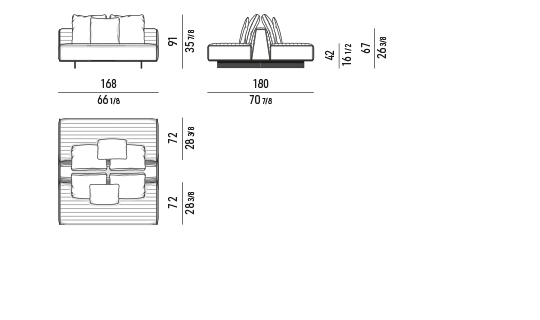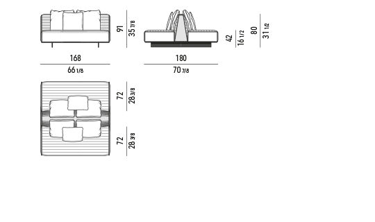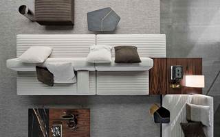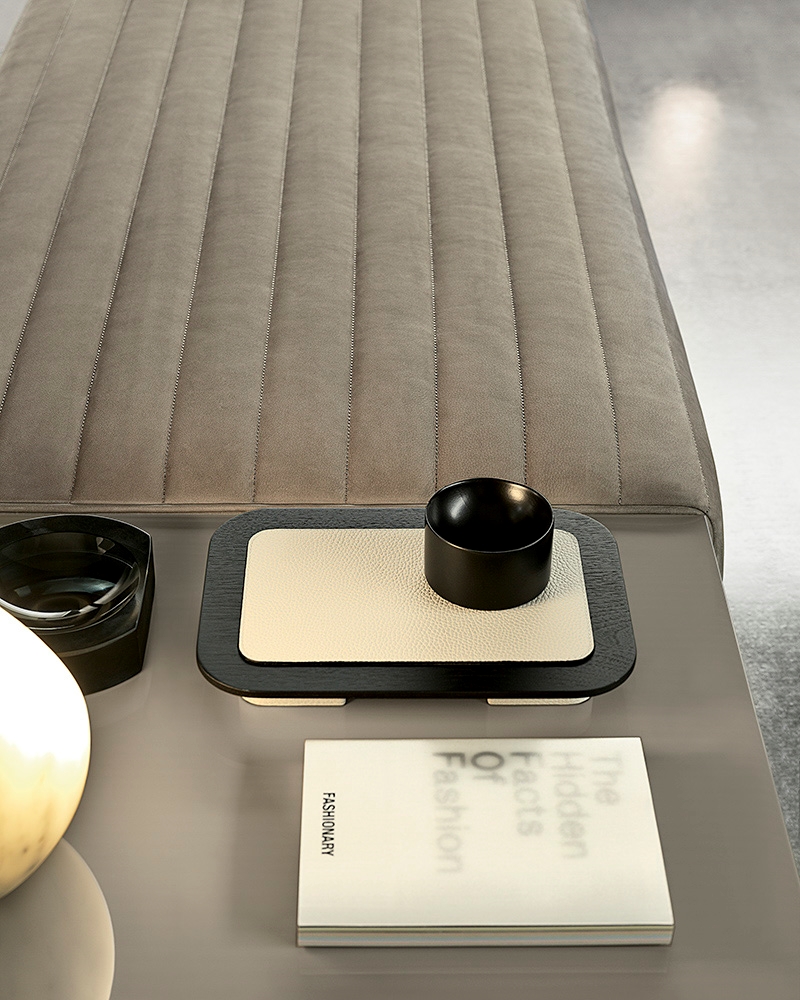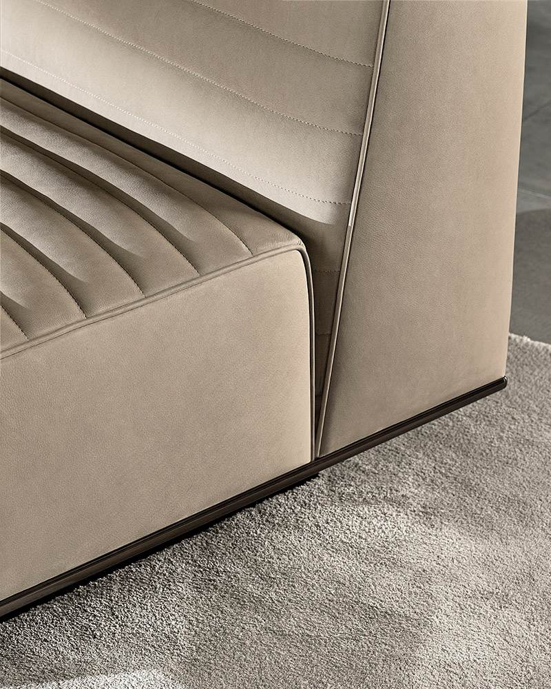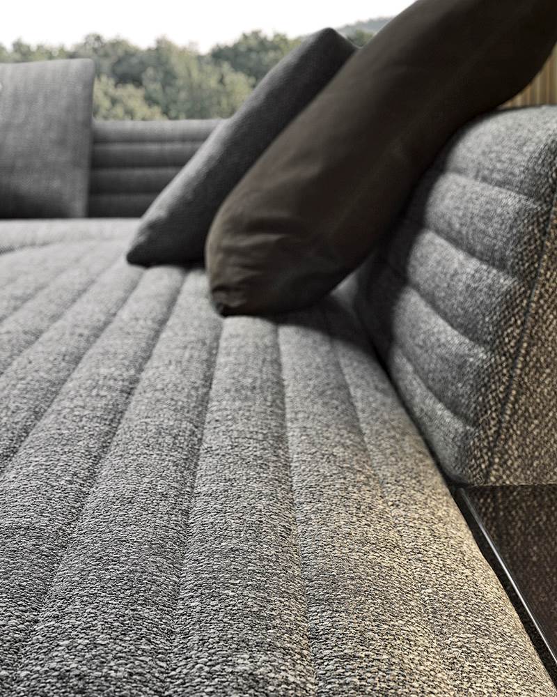 El elevado ejercicio de la alta costura se expresa en el acolchado gráfico de largas líneas horizontales que recorre los respaldos, los elementos fijos del asiento y los bancos complementarios, dotando a las superficies de gran suavidad y riqueza. Además de las piezas especiales espalda con espalda, caracterizadas por un único respaldo de forma trapezoidal, las chaise-longues equipadas con y sin el elemento Case, la familia incluye numerosos bancos de diferentes tamaños con y sin Case.Las dimensiones indicadas en los archivos CAD pueden variar ligeramente respecto a las medidas que figuran en la ficha de producto. N.B.: los archivos CAD presentes en el sitio web están protegidos por derechos de autor y son propiedad exclusiva de Minotti SpA. La empresa solamente autoriza su uso en el ámbito del diseño de interiores. Se prohíbe terminantemente cualquier otro uso