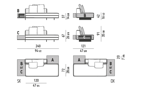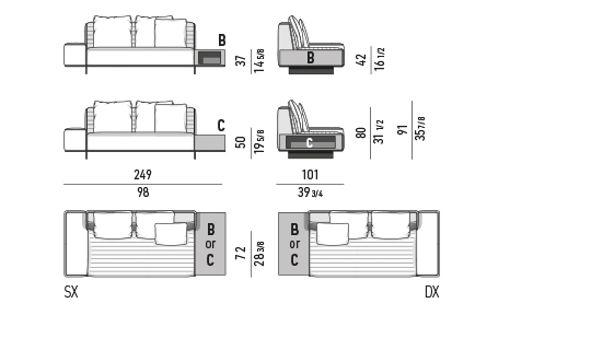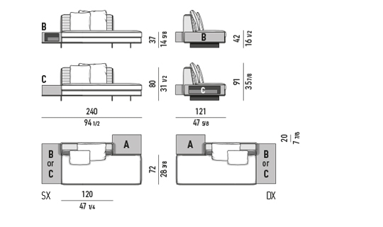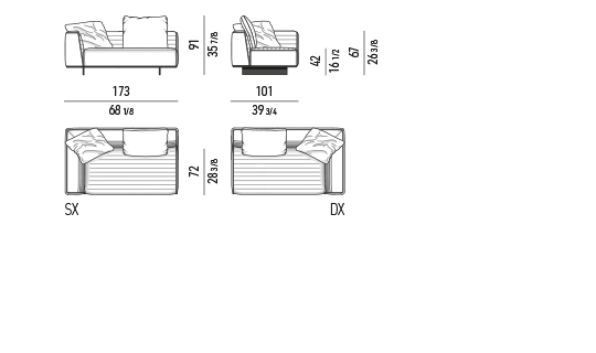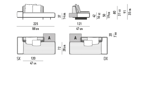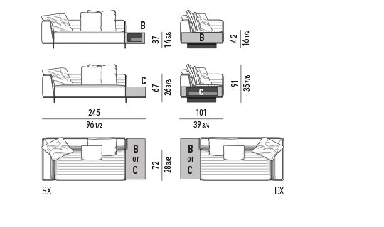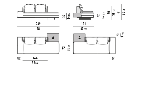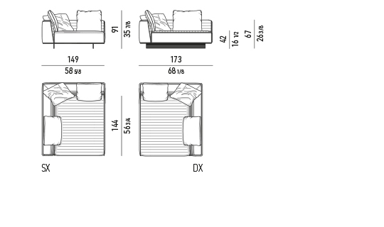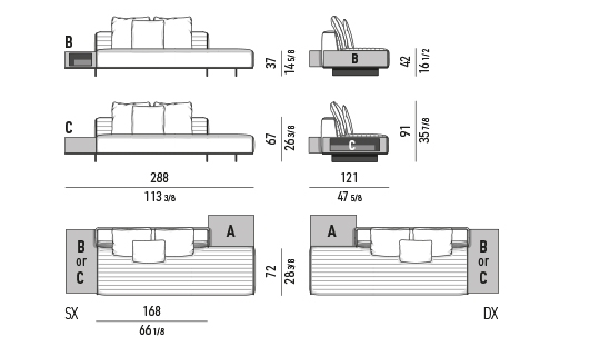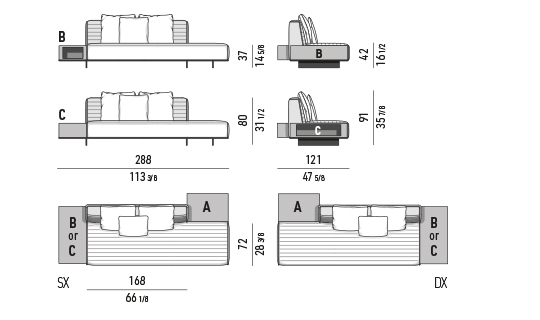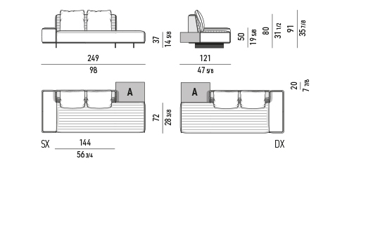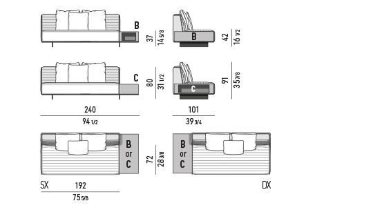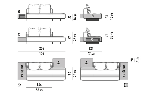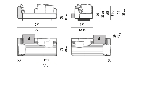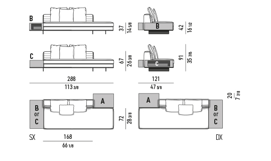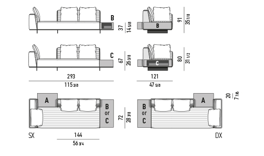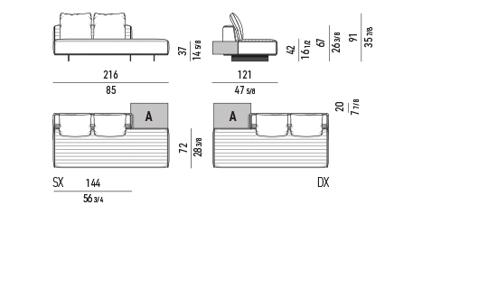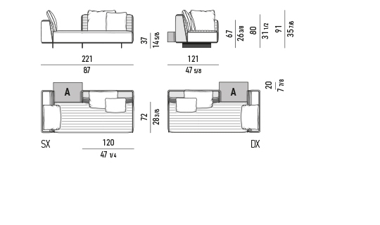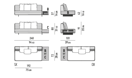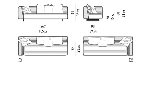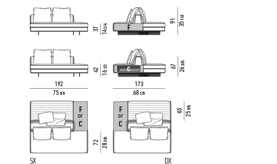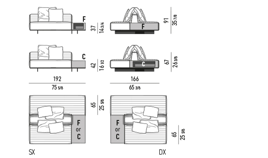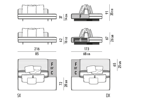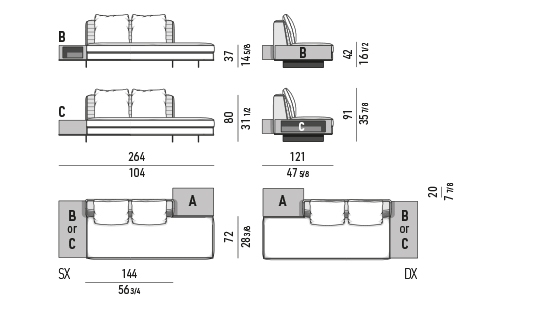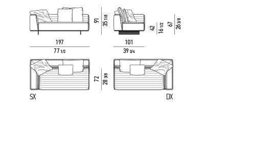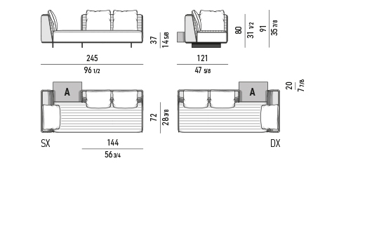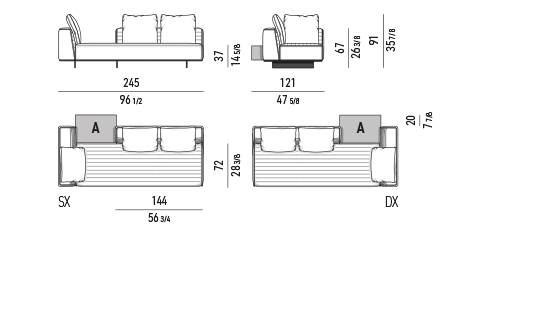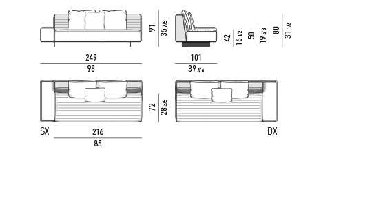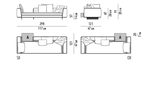 El elevado ejercicio de la alta costura se expresa en el acolchado gráfico de largas líneas horizontales que recorre los respaldos, los elementos fijos del asiento y los bancos complementarios, dotando a las superficies de gran suavidad y riqueza. Además de las piezas especiales espalda con espalda, caracterizadas por un único respaldo de forma trapezoidal, las chaise-longues equipadas con y sin el elemento Case, la familia incluye numerosos bancos de diferentes tamaños con y sin Case.Las dimensiones indicadas en los archivos CAD pueden variar ligeramente respecto a las medidas que figuran en la ficha de producto. N.B.: los archivos CAD presentes en el sitio web están protegidos por derechos de autor y son propiedad exclusiva de Minotti SpA. La empresa solamente autoriza su uso en el ámbito del diseño de interiores. Se prohíbe terminantemente cualquier otro uso