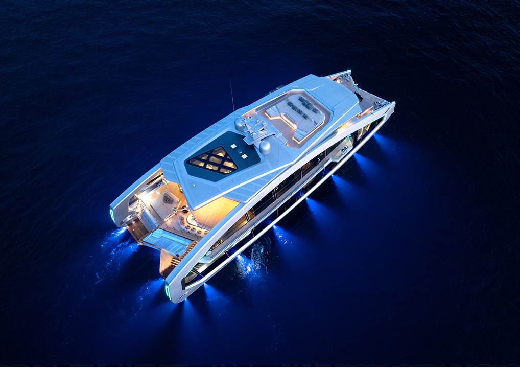 Un diseño único e innovador, una silueta audaz, con sorprendentes asimetrías y amplios ventanales: This Is It es el revolucionario catamarán a motor Tecnomar de The Italian Sea Group que alberga a bordo una selección de muebles Minotti, ofreciendo un equilibrio perfecto entre estética y funcionalidad.