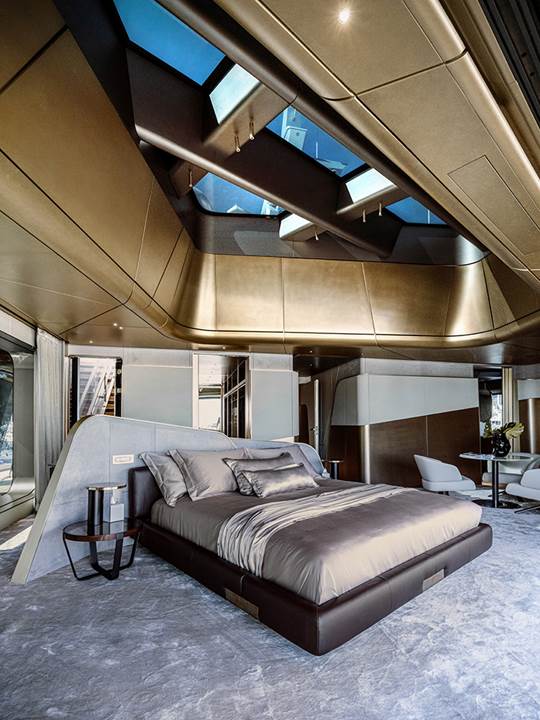 This Is It se distingue por el refinamiento de los detalles y el uso combinado de materiales sofisticados: cuero, roble y teca dialogan con las líneas sinuosas, marcadas por firmes cortes geométricos e inserciones en mármol gris. Los detalles de metales como el oro, el bronce y el titanio contrastan con las delicadas tonalidades naturales de las maderas y de las pieles, dando a los espacios un toque dinámico.