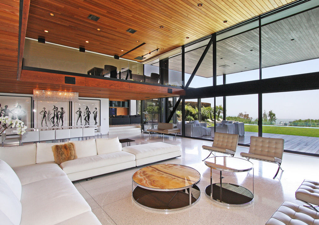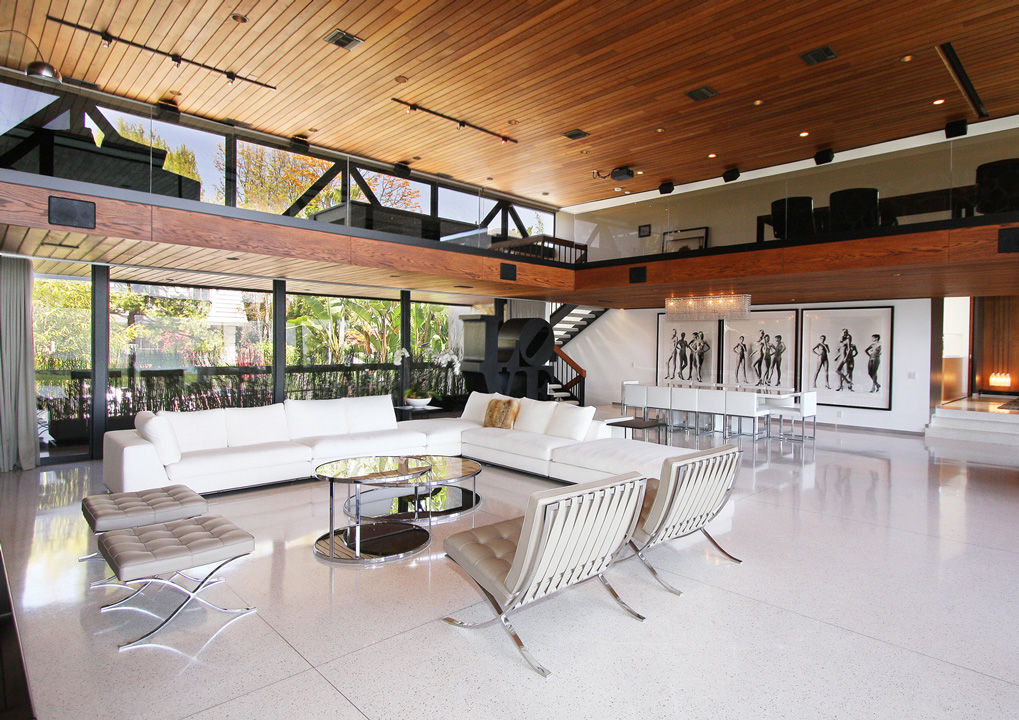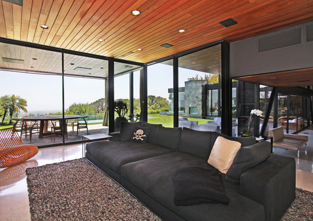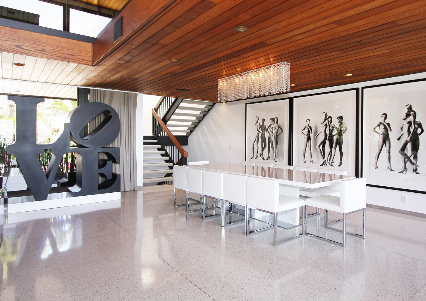 Un chalé de aspecto típicamente californiano, construido en los años setenta y con una magnífica vista sobre las alturas de Beverly Hills de un lado y la ciudad de Los Angeles del otro. Maxime Jacquet, artífice del sofisticado proyecto de diseño de interiores, ha decidido preservar todo lo posible el encanto original de la construcción y ha conservado todas las partes de piedra, como así también las amplias cristaleras y los cielorrasos de madera. A un proyecto arquitectónico de carácter moderno y esencial, Maxime Jacquet ha querido añadir notas marcadamente características de los años sesenta y setenta, como las obras de Andy Warhol y Robert Indiana, o las fotografías realizadas por Helmut Newton. El objetivo del diseño de interiores era realizar un espacio que conjugara de manera impecable tradición y modernidad, lujo y sobriedad, elegancia y confort. Para amueblar los espacios del chalé se eligieron numerosos elementos de la colección Minotti. El amplio y luminoso espacio living contiene nada menos que dos composiciones del sistema de asientos Hamilton. El espacio adyacente a la chimenea ha sido amueblado con una composición angular revestida en tejido color crudo y presenta mesitas Huber con tableros de preciado ónix, una mesita Leger y un mueble Archipenko. En el área TV se ha colocado una composición Hamilton revestida en tejido color negro. En el mismo ambiente se encuentran un banco Smith y una mesa Toulouse con sillas Bag.