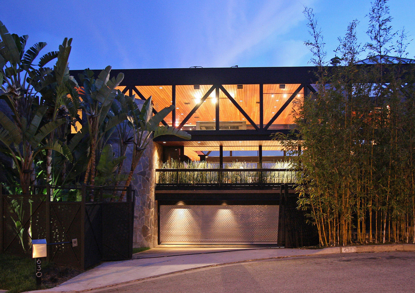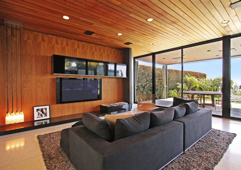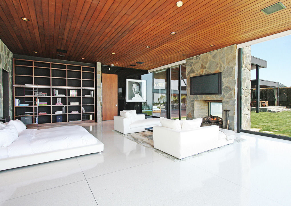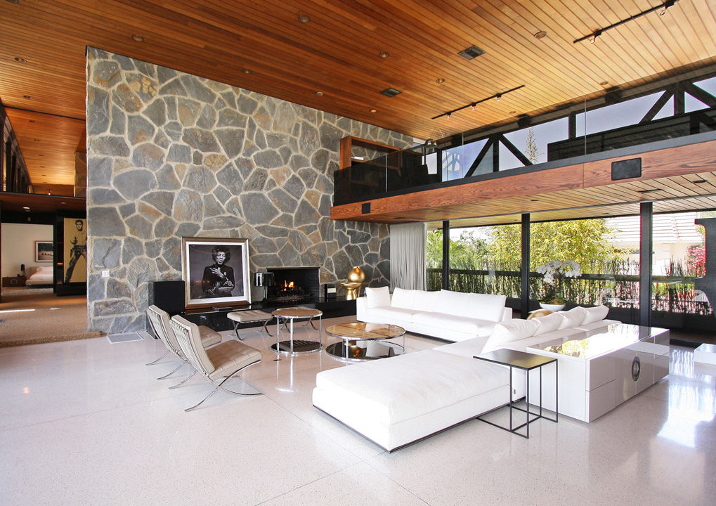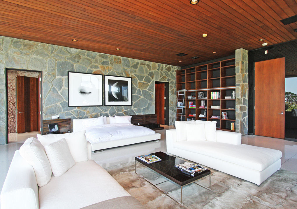 Un chalé de aspecto típicamente californiano, construido en los años setenta y con una magnífica vista sobre las alturas de Beverly Hills de un lado y la ciudad de Los Angeles del otro. Maxime Jacquet, artífice del sofisticado proyecto de diseño de interiores, ha decidido preservar todo lo posible el encanto original de la construcción y ha conservado todas las partes de piedra, como así también las amplias cristaleras y los cielorrasos de madera. A un proyecto arquitectónico de carácter moderno y esencial, Maxime Jacquet ha querido añadir notas marcadamente características de los años sesenta y setenta, como las obras de Andy Warhol y Robert Indiana, o las fotografías realizadas por Helmut Newton. El objetivo del diseño de interiores era realizar un espacio que conjugara de manera impecable tradición y modernidad, lujo y sobriedad, elegancia y confort. Para amueblar los espacios del chalé se eligieron numerosos elementos de la colección Minotti. El amplio y luminoso espacio living contiene nada menos que dos composiciones del sistema de asientos Hamilton. El espacio adyacente a la chimenea ha sido amueblado con una composición angular revestida en tejido color crudo y presenta mesitas Huber con tableros de preciado ónix, una mesita Leger y un mueble Archipenko. En el área TV se ha colocado una composición Hamilton revestida en tejido color negro. En el mismo ambiente se encuentran un banco Smith y una mesa Toulouse con sillas Bag.