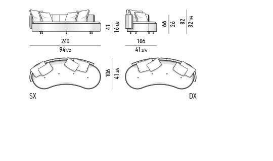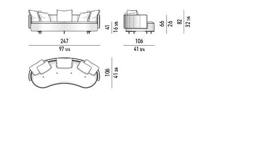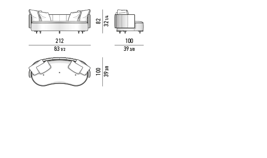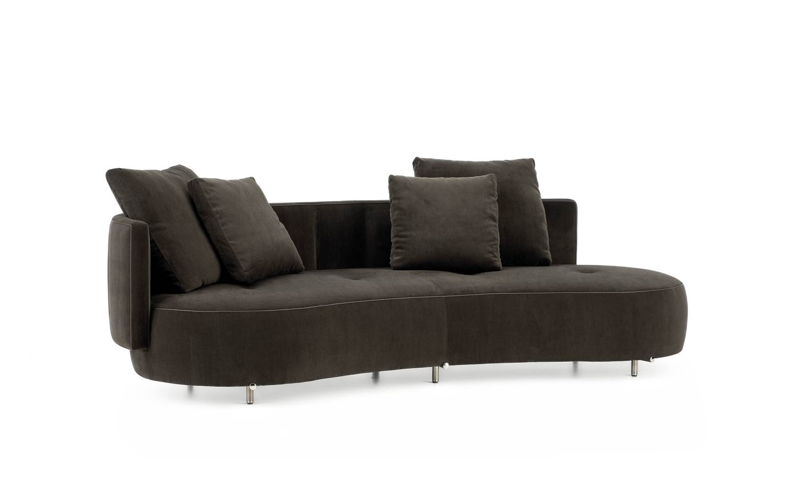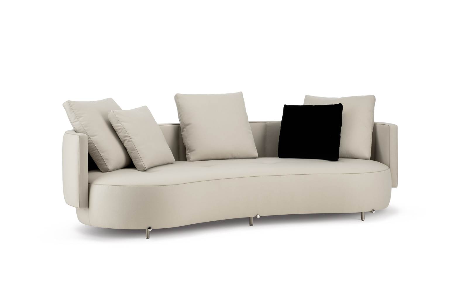 El sofá tiene una silueta suavemente curvada tanto en el tamaño pequeño como en el grande, ambos disponibles también en versión península.