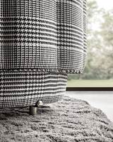 Las patas, adornadas con un pequeño botón joya, mantienen el juego de uniones entre elementos verticales y horizontales inspirado en los detalles de construcción típicos de la tradición japonesa, de la que la familia toma su nombre, y acogen el volumen tapizado de los sofás y sillones.