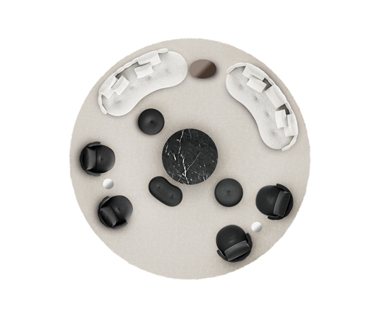 Una familia de asientos que, partiendo del diseño original del icónico Torii del estudio Nendo, mantiene inalterada la morfología del respaldo, pero presenta una estética más sólida y compacta: las dos familias dialogan armoniosamente entre sí en un hábil juego de volúmenes llenos y vacíos.