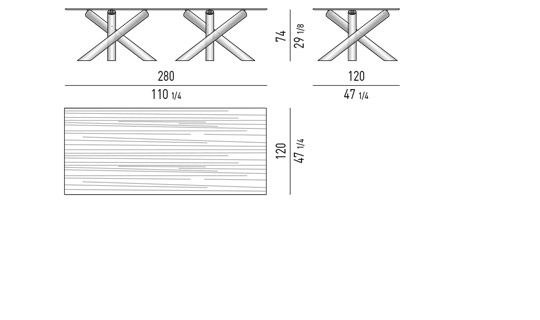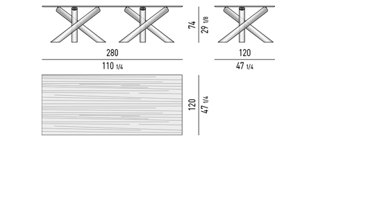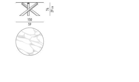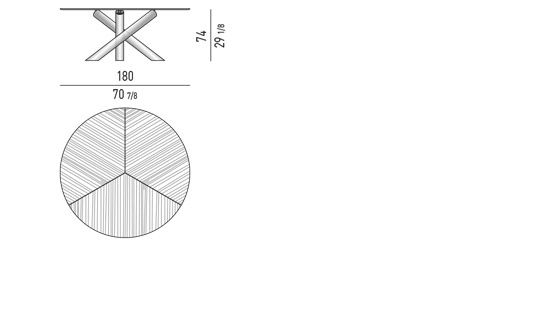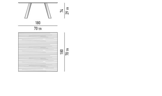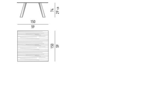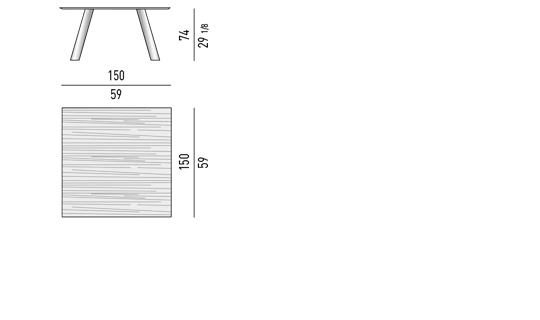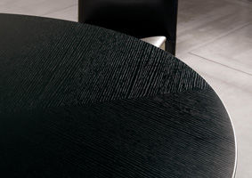 El sobre está disponible en versión redonda, cuadrada y rectangular, en distintas medidas. Sus acabados son numerosos y van del vidrio templado Gris humo o el mármol Calacatta a maderas sofisticadas como el Nogal Canaletto y el roble, propuesto en las variantes natural cepillado, teñido con poro abierto de color Gris y lacado con poro abierto en los colores Moka o Negro.